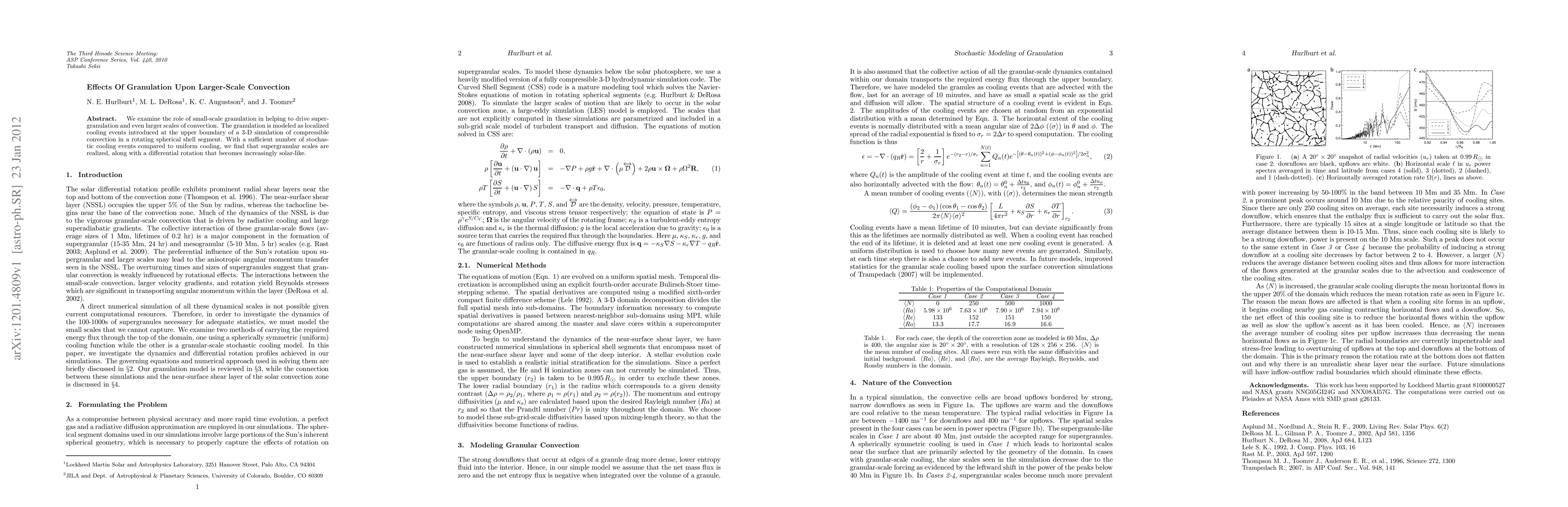 We examine the role of small-scale granulation in helping to drive supergranulation and even larger scales of convection. The granulation is modeled as localized cooling events introduced at the upper boundary of a 3-D simulation of compressible convection in a rotating spherical shell segment. With a sufficient number of stochastic cooling events compared to uniform cooling, we find that supergranular scales are realized, along with a differential rotation that becomes increasingly solar-like.