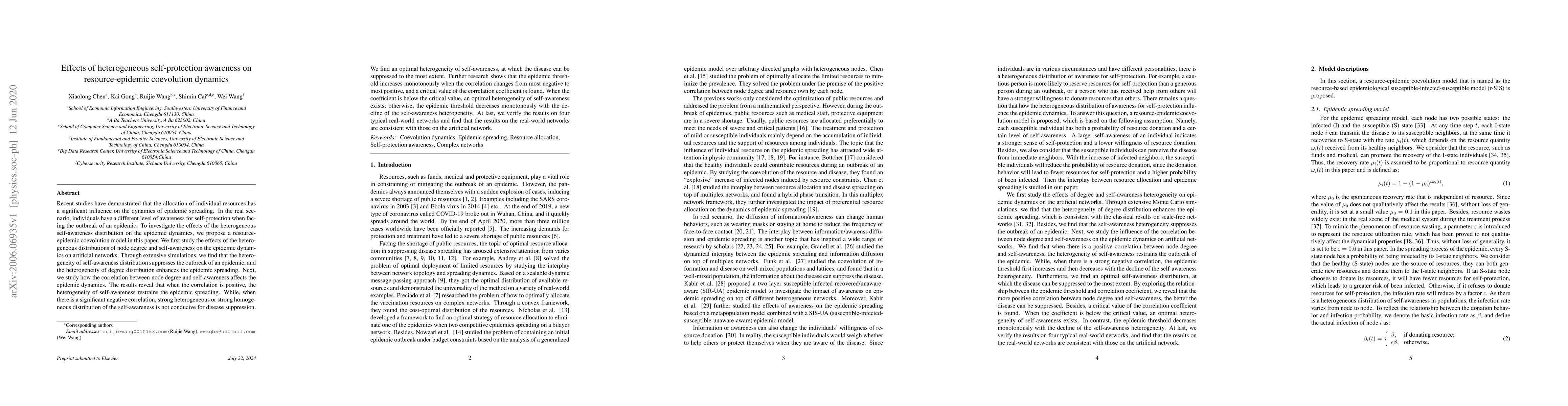 This paper proposes a resource-epidemic coevolution model to investigate how heterogeneous self-protection awareness impacts epidemic dynamics. Simulation results show that self-awareness heterogeneity suppresses epidemic outbreaks, while degree heterogeneity enhances them, and an optimal level of self-awareness heterogeneity exists for maximum disease suppression.