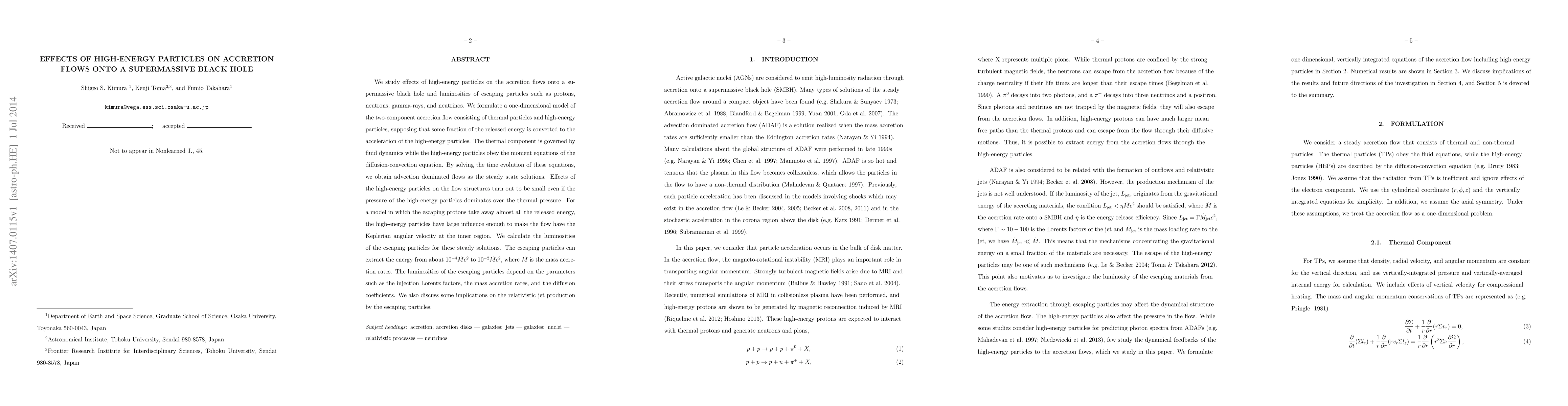This paper investigates the influence of high-energy particles on accretion flows around supermassive black holes, finding that while their pressure may dominate, their effect on flow structures is minor. The study models the accretion flow as a two-component system, solving for steady-state advection-dominated flows, and calculates the luminosities of escaping particles, which can extract significant energy from the accretion process.