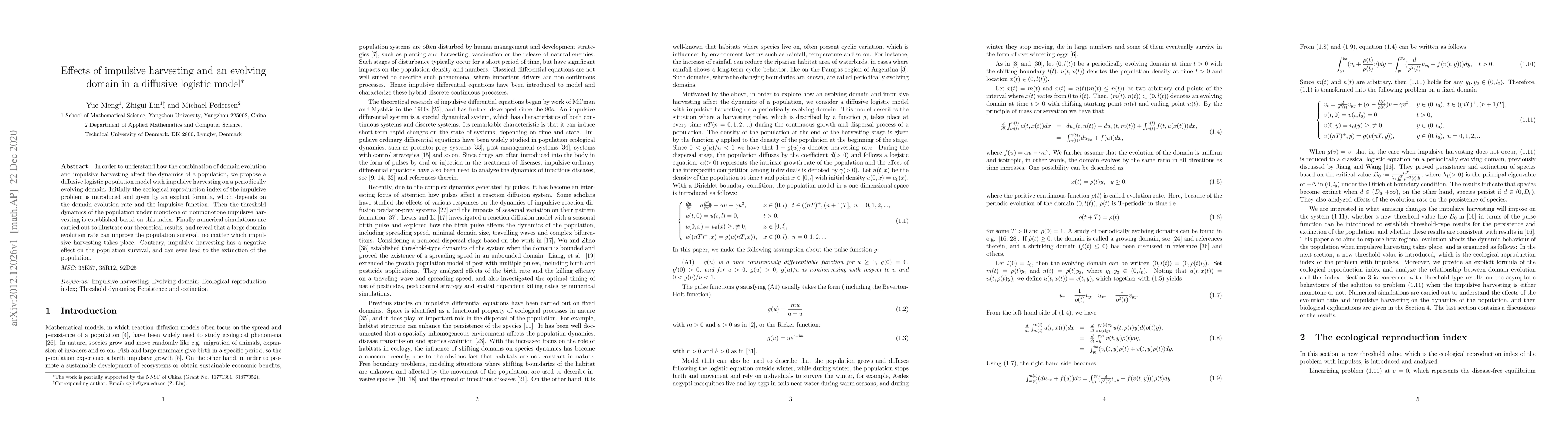 This paper investigates the impact of impulsive harvesting and evolving spatial domains on population dynamics using a diffusive logistic model. It finds that while a large domain evolution rate can enhance population survival, impulsive harvesting negatively affects it, potentially leading to extinction.