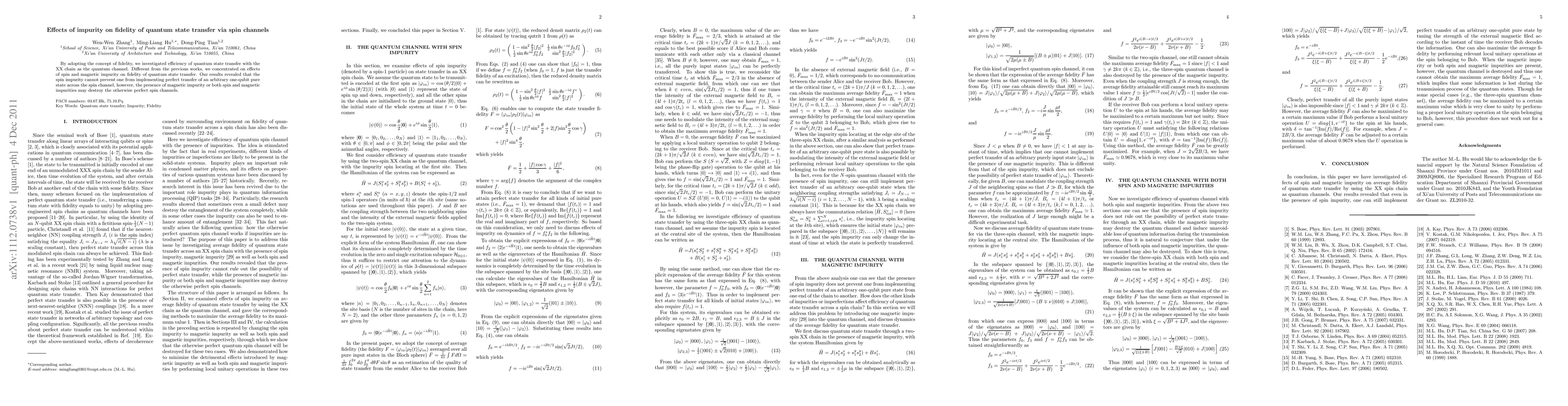 Summary: This study examines the fidelity of quantum state transfer through XX spin chains, focusing on the impact of spin and magnetic impurities. It finds that while spin impurities do not hinder perfect state transfer, magnetic impurities can disrupt otherwise flawless quantum channels.