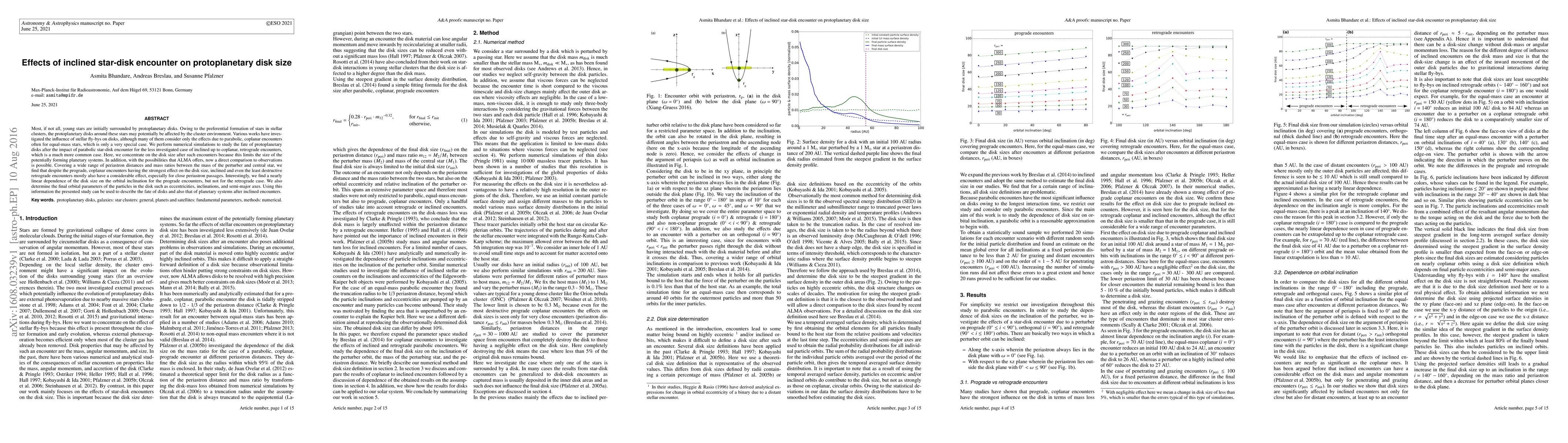Most, if not all, young stars are initially surrounded by protoplanetary disks. Owing to the preferential formation of stars in stellar clusters, the protoplanetary disks around these stars may potentially be affected by the cluster environment. Various works have investigated the influence of stellar fly-bys on disks, although many of them consider only the effects due to parabolic, coplanar encounters often for equal-mass stars, which is only a very special case. We perform numerical simulations to study the fate of protoplanetary disks after the impact of parabolic star-disk encounter for the less investigated case of inclined up to coplanar, retrograde encounters, which is a much more common case. Here, we concentrate on the disk size after such encounters because this limits the size of the potentially forming planetary systems. In addition, with the possibilities that ALMA offers, now a direct comparison to observations is possible. Covering a wide range of periastron distances and mass ratios between the mass of the perturber and central star, we find that despite the prograde, coplanar encounters having the strongest effect on the disk size, inclined and even the least destructive retrograde encounters mostly also have a considerable effect, especially for close periastron passages. Interestingly, we find a nearly linear dependence of the disk size on the orbital inclination for the prograde encounters, but not for the retrograde case. We also determine the final orbital parameters of the particles in the disk such as eccentricities, inclinations, and semi-major axes. Using this information the presented study can be used to describe the fate of disks and also that of planetary systems after inclined encounters.