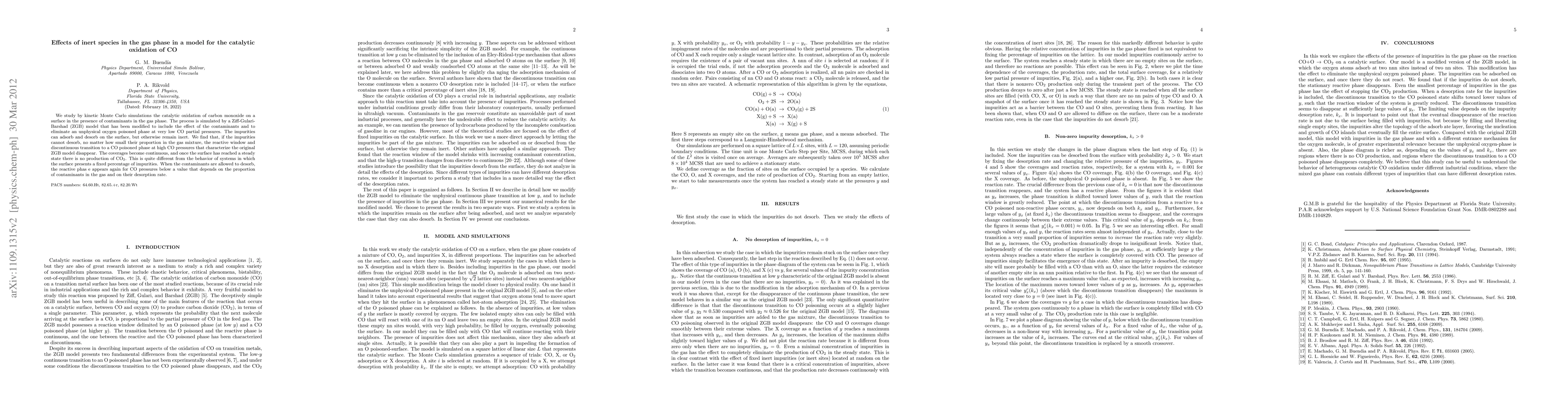 We study by kinetic Monte Carlo simulations the catalytic oxidation of carbon monoxide on a surface in the presence of contaminants in the gas phase. The process is simulated by a Ziff-Gulari-Barshad (ZGB) model that has been modified to include the effect of the contaminants and to eliminate the unphysical oxygen-poisoned phase. The impurities can adsorb and desorb on the surface, but otherwise remain inert. We find that, if the impurities can not desorb, no matter how small their proportion in the gas mixture, the first order transition and the reactive window that characterize the ZGB model disappear. The coverages become continuous, and once the surface has reached a steady state there is no production of CO$_2$. This is quite different from the behavior of a system in which the surface presents a fixed percentage of impurities. When the contaminants are allowed to desorb, the reactive window appears again, and disappears at a value that depends on the proportion of contaminants in the gas and on their desorption rate.
