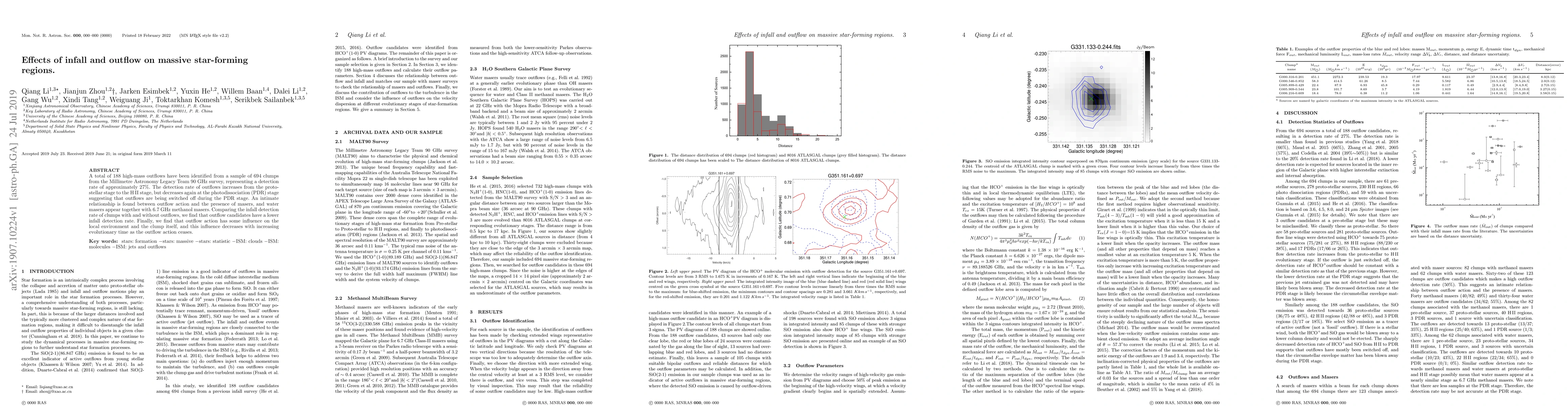This study identified 188 high-mass outflows from massive star-forming regions, finding a link between outflow action and maser presence, as well as an influence on the local environment that decreases over time.