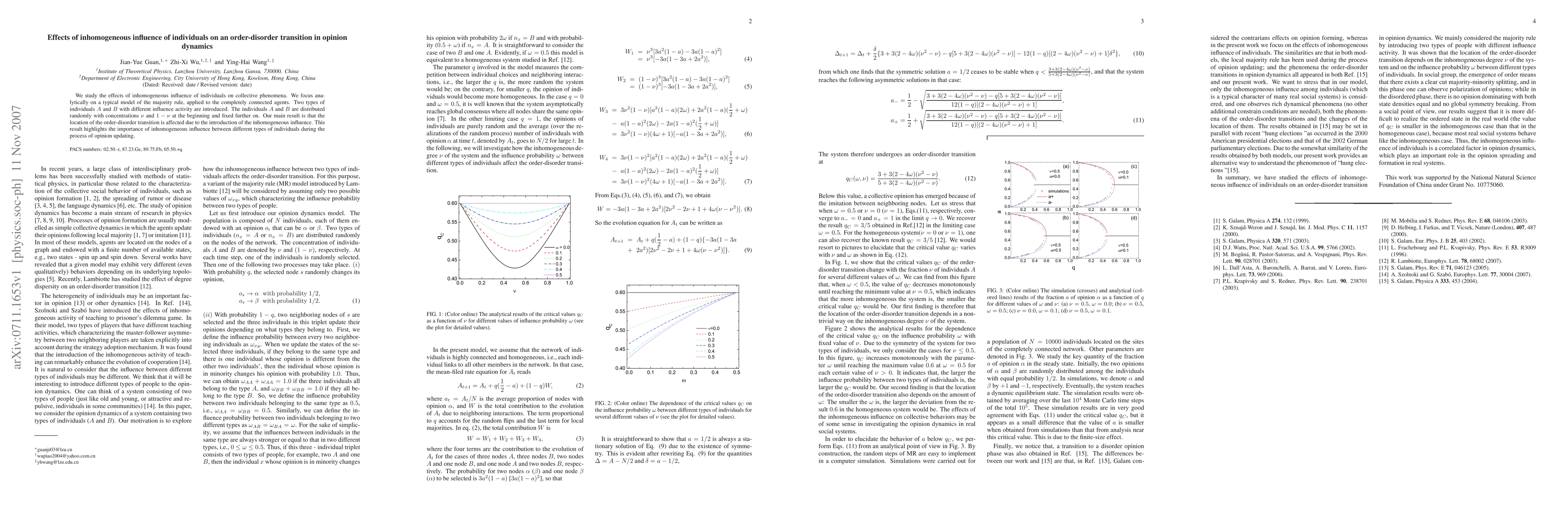 We study the effects of inhomogeneous influence of individuals on collective phenomena. We focus analytically on a typical model of the majority rule, applied to the completely connected agents. Two types of individuals $A$ and $B$ with different influence activity are introduced. The individuals $A$ and $B$ are distributed randomly with concentrations $\nu$ and $1-\nu$ at the beginning and fixed further on. Our main result is that the location of the order-disorder transition is affected due to the introduction of the inhomogeneous influence. This result highlights the importance of inhomogeneous influence between different types of individuals during the process of opinion updating.