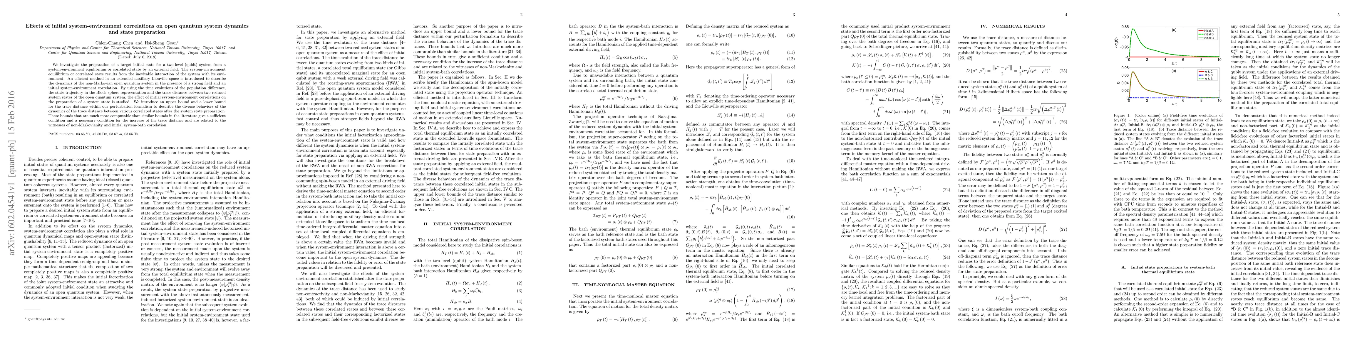 We investigate the preparation of a target initial state for a two-level (qubit) system from a system-environment equilibrium or correlated state by an external field. The system-environment equilibrium or correlated state results from the inevitable interaction of the system with its environment. An efficient method in an extended auxiliary Liouville space is introduced to describe the dynamics of the non-Markovian open quantum system in the presence of a strong field and an initial system-environment correlation. By using the time evolutions of the population difference, the state trajectory in the Bloch sphere representation and the trace distance between two reduced system states of the open quantum system, the effect of initial system-environment correlations on the preparation of a system state is studied. We introduce an upper bound and a lower bound for the trace distance within our perturbation formalism to describe the diverse behaviors of the dynamics of the trace distance between various correlated states after the system state preparation. These bounds that are much more computable than similar bounds in the literature give a sufficient condition and a necessary condition for the increase of the trace distance and are related to the witnesses of non-Markovianity and initial system-bath correlation.