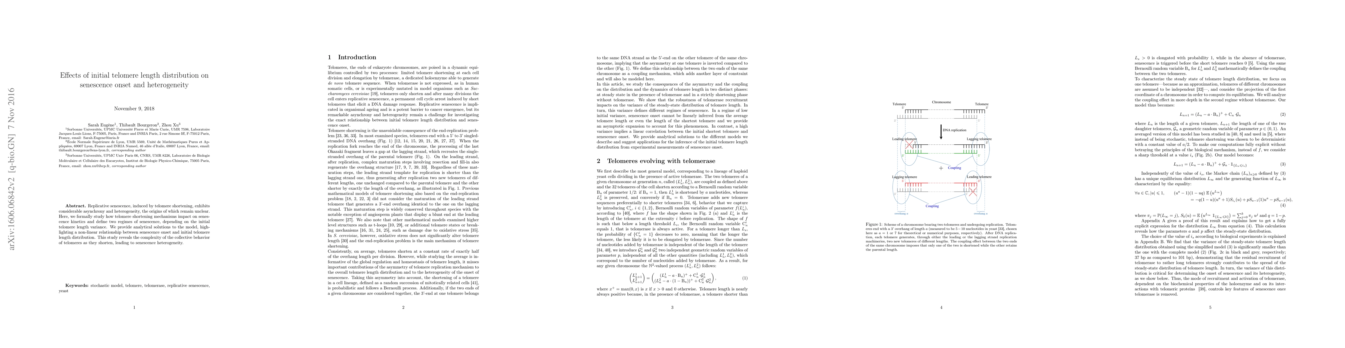 This research investigates how initial telomere length distribution influences the onset and heterogeneity of replicative senescence. The study reveals two distinct senescence regimes based on telomere length variance, demonstrating a non-linear relationship between senescence timing and initial telomere length distribution.