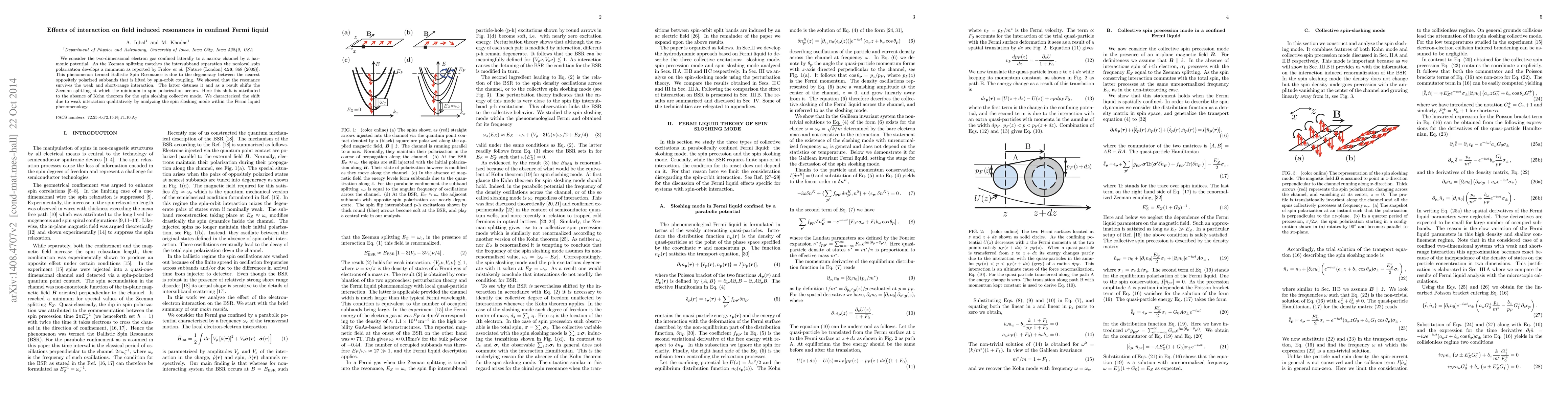 We consider the two-dimensional electron gas confined laterally to a narrow channel by a harmonic potential. As the Zeeman splitting matches the intersubband separation the nonlocal spin polarization develops a minimum as reported by Frolov et al. [Nature (London) 458, 868 (2009)]. This phenomenon termed Ballistic Spin Resonance is due to the degeneracy between the nearest oppositely polarized subbands that is lifted by spin-orbit coupling. We showed that the resonance survives the weak and short-range interaction. The latter detunes it and as a result shifts the Zeeman splitting at which the minimum in spin polarization occurs. Here this shift is attributed to the absence of Kohn theorem for the spin sloshing collective mode. We characterized the shift due to weak interaction qualitatively by analyzing the spin sloshing mode within the Fermi liquid phenomenology.