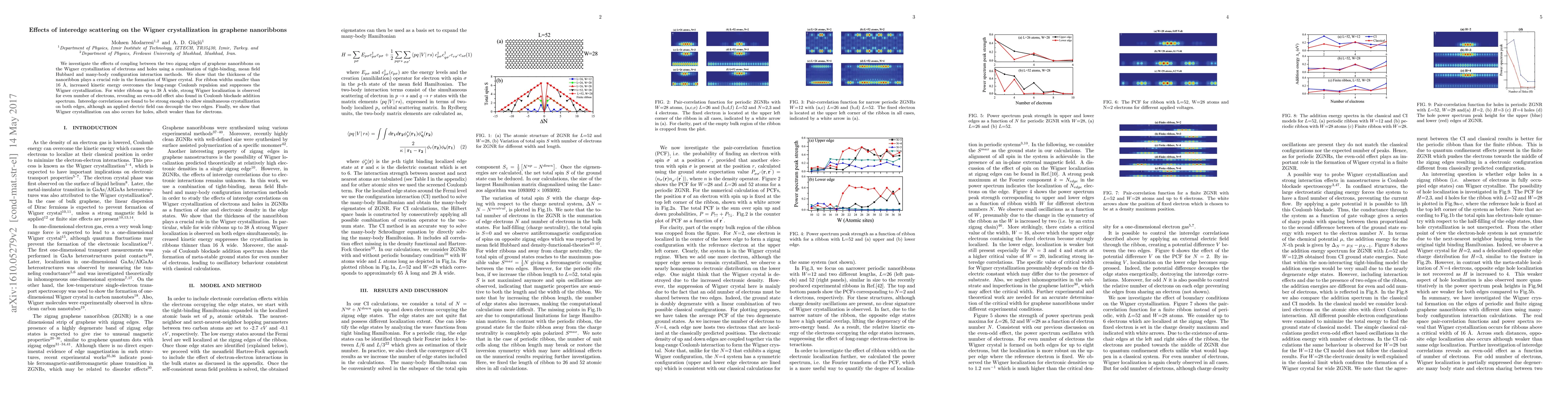 This study explores the impact of interedge scattering on the Wigner crystallization in graphene nanoribbons, revealing that nanoribbon thickness significantly influences this phenomenon. For narrow ribbons, increased kinetic energy suppresses crystallization, while wider ribbons show strong Wigner localization, especially for even electron counts, indicating an even-odd effect.