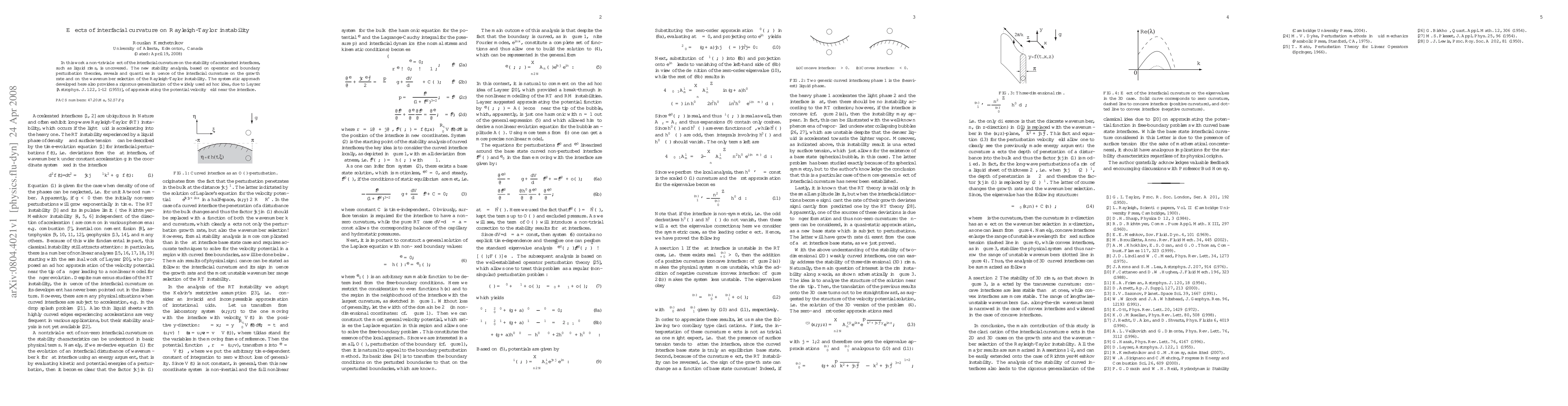 This paper uncovers the effect of interfacial curvature on the stability of accelerated interfaces, revealing its influence on the growth rate and wavenumber selection of Rayleigh-Taylor instability through a new stability analysis. It also generalizes the approximation method for potential velocity fields near interfaces.