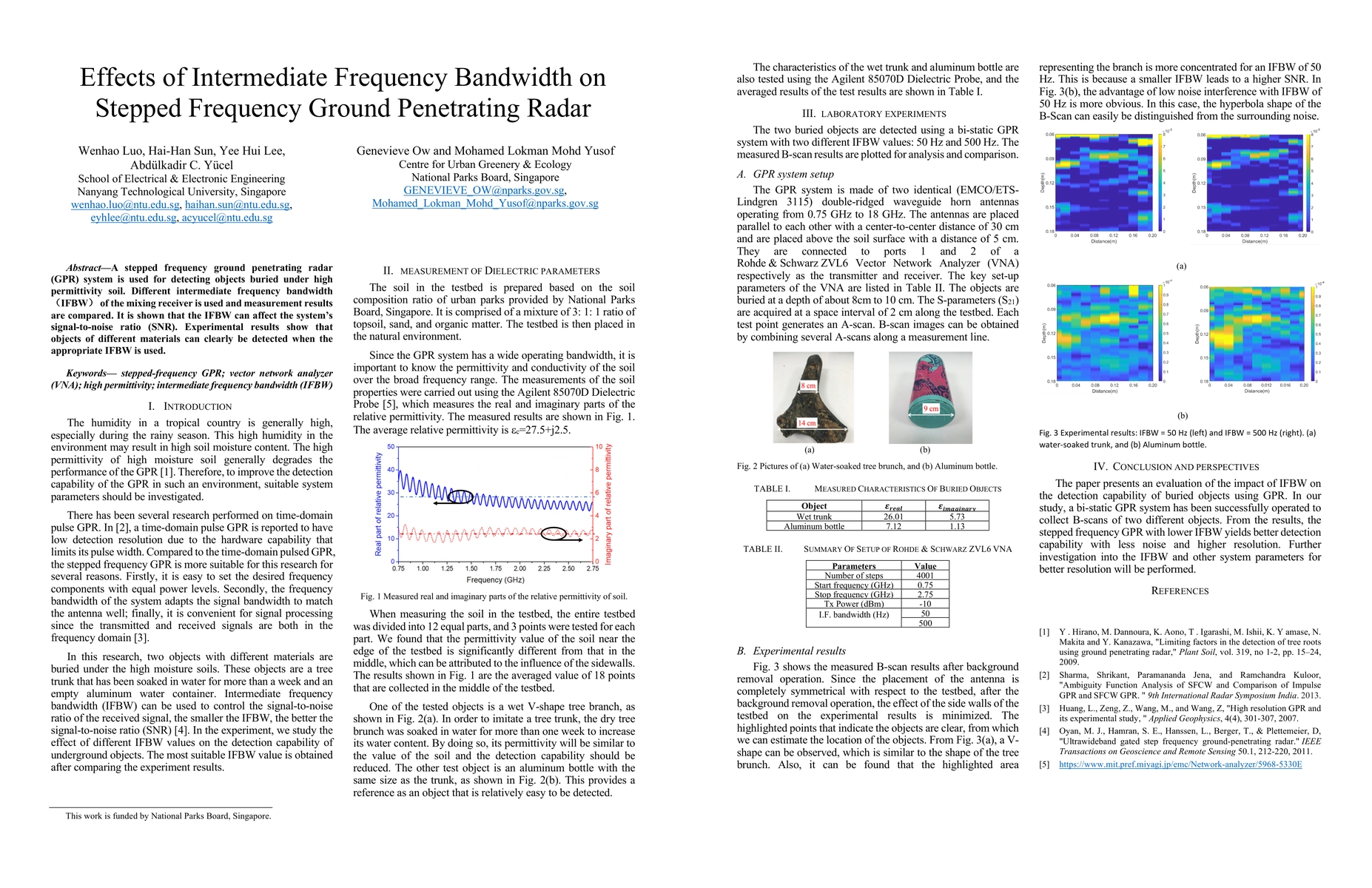 This study investigates how varying intermediate frequency bandwidth (IFBW) in a stepped frequency ground penetrating radar (GPR) system influences detection capabilities in high permittivity soils. Results demonstrate that the IFBW significantly impacts the system's signal-to-noise ratio (SNR), with optimal bandwidths enabling clearer detection of objects of different materials.