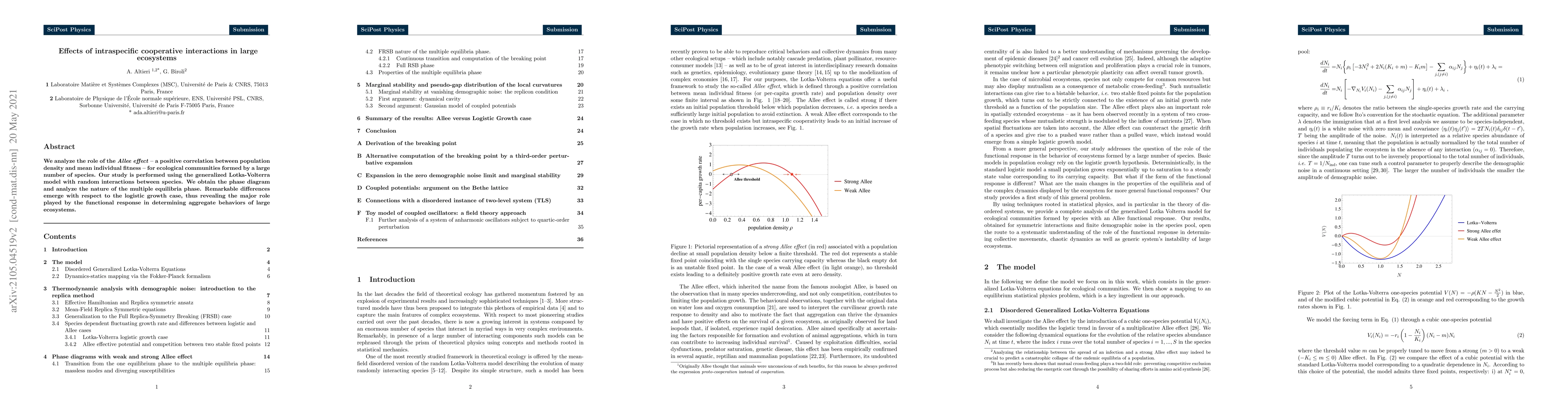 This study investigates the Allee effect's influence on large ecological communities using a generalized Lotka-Volterra model, revealing significant differences in multiple equilibria phases compared to logistic growth, highlighting the functional response's critical role in ecosystem dynamics.