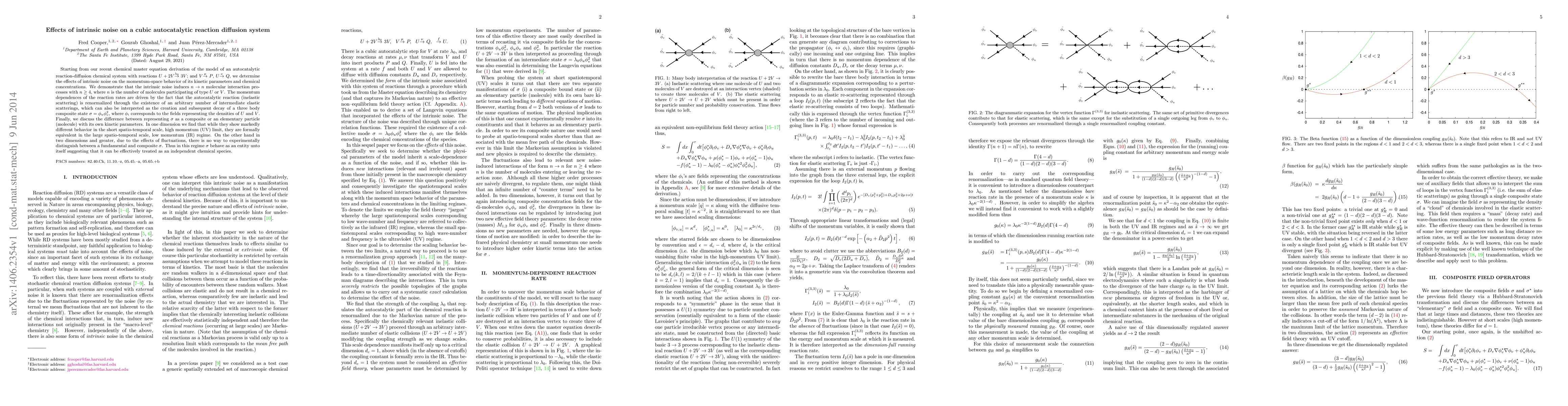 Starting from our recent chemical master equation derivation of the model of an autocatalytic reaction-diffusion chemical system with reactions $U+2V {\stackrel {\lambda_0}{\rightarrow}}~ 3 V;$ and $V {\stackrel {\mu}{\rightarrow}}~P$, $U {\stackrel {\nu}{\rightarrow}}~ Q$, we determine the effects of intrinsic noise on the momentum-space behavior of its kinetic parameters and chemical concentrations. We demonstrate that the intrinsic noise induces $n \rightarrow n$ molecular interaction processes with $n \geq 4$, where $n$ is the number of molecules participating of type $U$ or $V$. The momentum dependences of the reaction rates are driven by the fact that the autocatalytic reaction (inelastic scattering) is renormalized through the existence of an arbitrary number of intermediate elastic scatterings, which can also be interpreted as the creation and subsequent decay of a three body composite state $\sigma = \phi_u \phi_v^2$, where $\phi_i$ corresponds to the fields representing the densities of $U$ and $V$. Finally, we discuss the difference between representing $\sigma$ as a composite or an elementary particle (molecule) with its own kinetic parameters. In one dimension we find that while they show markedly different behavior in the short spatio-temporal scale, high momentum (UV) limit, they are formally equivalent in the large spatio-temporal scale, low momentum (IR) regime. On the other hand in two dimensions and greater, due to the effects of fluctuations, there is no way to experimentally distinguish between a fundamental and composite $\sigma$. Thus in this regime $\sigma$ behave as an entity unto itself suggesting that it can be effectively treated as an independent chemical species.