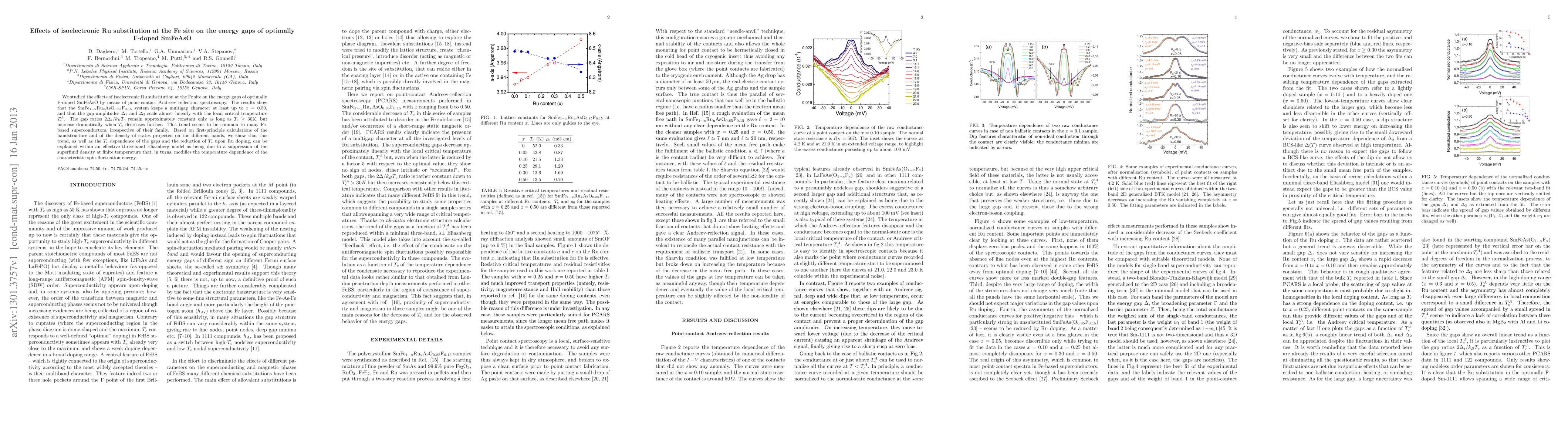 This study investigates the impact of isoelectronic Ru substitution at the Fe site in optimally F-doped SmFeAsO using point-contact Andreev reflection spectroscopy. The findings reveal that the SmFe_{1-x}Ru_{x}AsO_{0.85}F_{0.15} system maintains a multigap character, with gap amplitudes scaling linearly with the local critical temperature TcA, and the trend is consistent across various Fe-based superconductors.