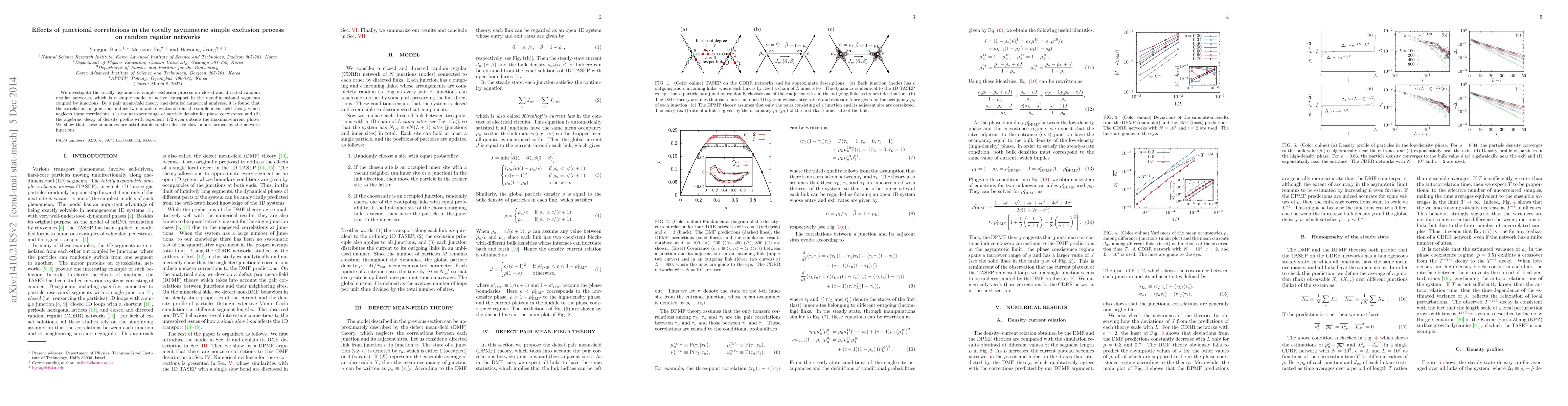 This paper examines the totally asymmetric simple exclusion process on random regular networks, revealing that junctional correlations lead to a narrower density range for phase coexistence and an algebraic decay of density profiles outside the maximal-current phase, both effects stemming from effective slow bonds created by network junctions.