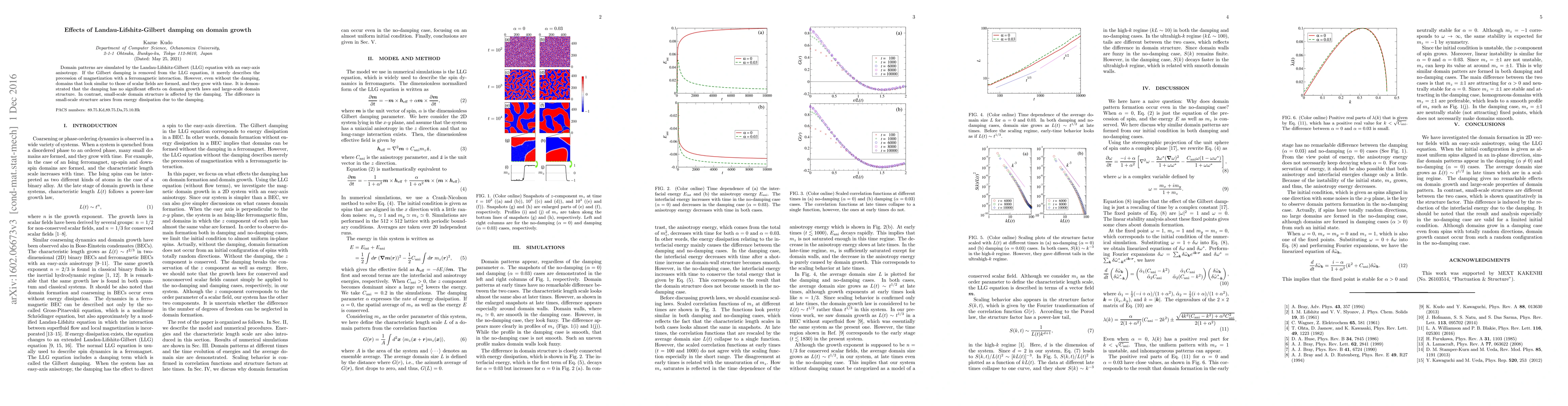This study investigates domain growth patterns using the Landau-Lifshitz-Gilbert (LLG) equation with damping, finding that damping does not significantly impact large-scale domain growth laws but affects small-scale domain structure due to energy dissipation.