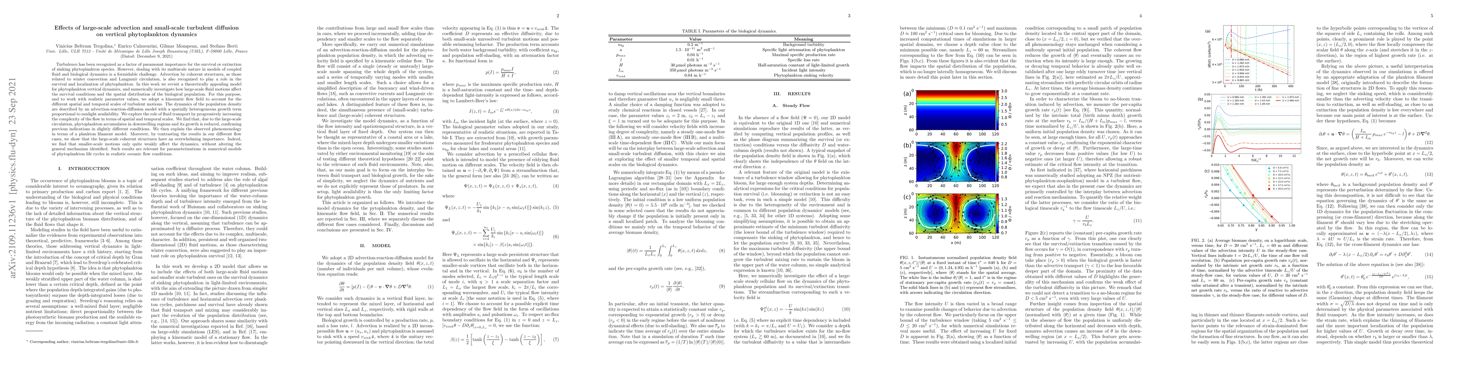This study investigates how large-scale ocean currents affect phytoplankton survival and distribution in the ocean. It finds that large-scale currents play a crucial role in determining phytoplankton's fate, while smaller-scale turbulent motions have a minimal impact.