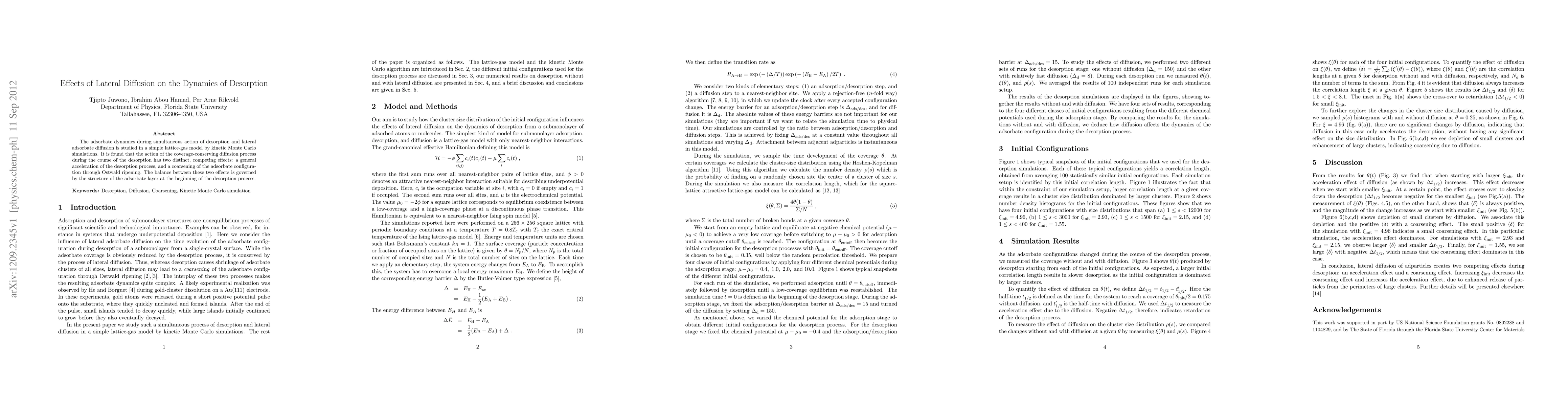 The adsorbate dynamics during simultaneous action of desorption and lateral adsorbate diffusion is studied in a simple lattice-gas model by kinetic Monte Carlo simulations. It is found that the action of the coverage-conserving diffusion process during the course of the desorption has two distinct, competing effects: a general acceleration of the desorption process, and a coarsening of the adsorbate configuration through Ostwald ripening. The balance between these two effects is governed by the structure of the adsorbate layer at the beginning of the desorption process.