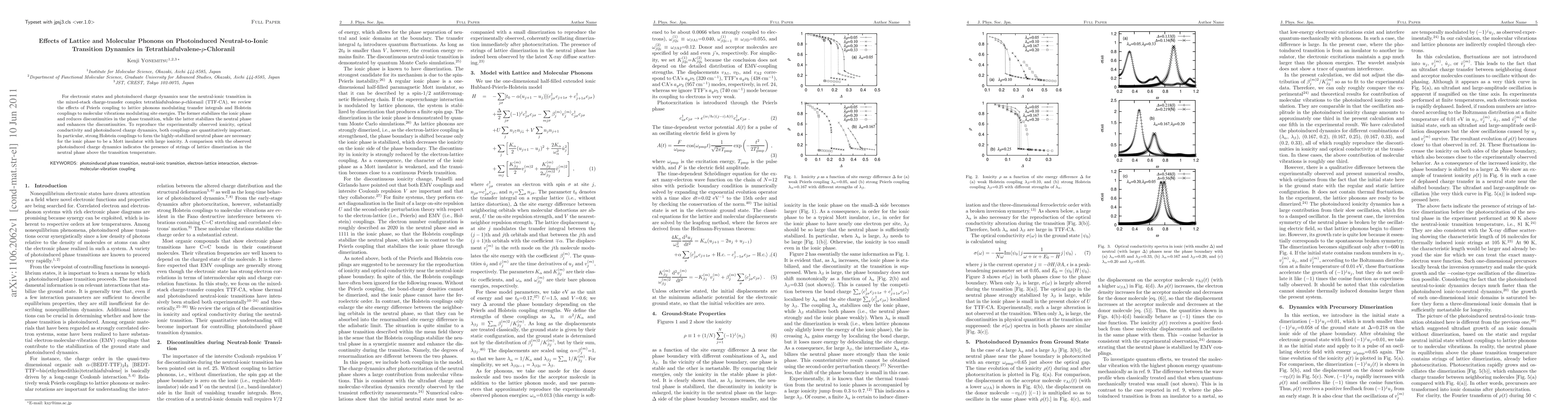 This paper investigates how lattice and molecular phonons influence the neutral-to-ionic transition dynamics in TTF-CA, finding that lattice phonons stabilize the ionic phase while molecular vibrations stabilize the neutral phase. Both phonon couplings are crucial for accurately reproducing experimental observations of ionicity and charge dynamics.