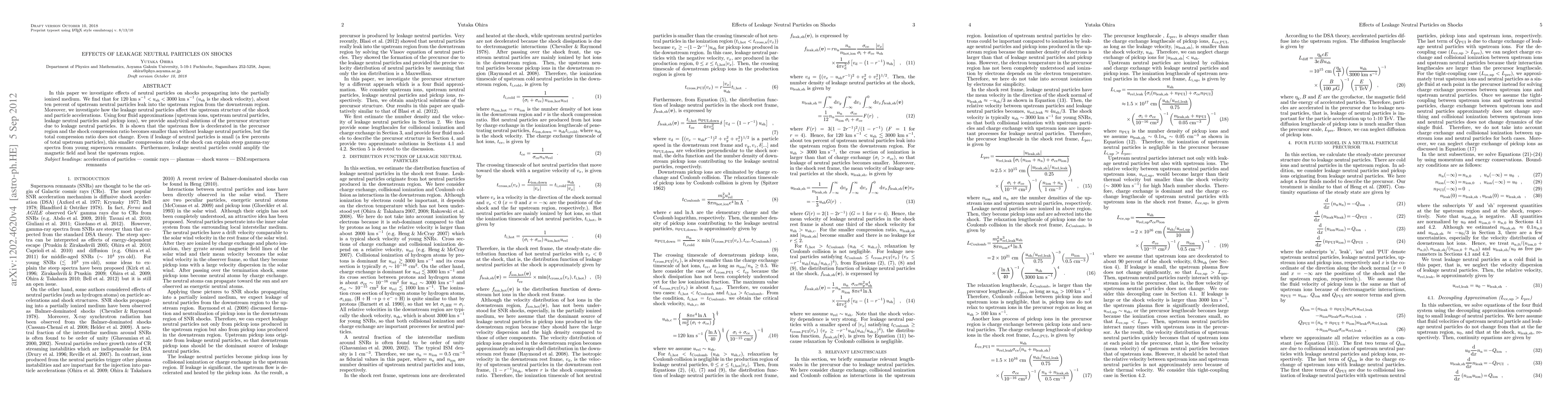 In this paper we investigate effects of neutral particles on shocks propagating into the partially ionized medium. We find that for 120 km/s < u_{sh} < 3000 km/s (u_{sh} is the shock velocity), about ten percent of upstream neutral particles leak into the upstream region from the downstream region. Moreover, we investigate how the leakage neutral particles affect the upstream structure of the shock and particle accelerations. Using four fluid approximations (upstream ions, upstream neutral particles, leakage neutral particles and pickup ions), we provide analytical solutions of the precursor structure due to leakage neutral particles. It is shown that the upstream flow is decelerated in the precursor region and the shock compression ratio becomes smaller than without leakage neutral particles, but the total compression ratio does not change. Even if leakage of neutral particles is small (a few percents of total upstream particles), this smaller compression ratio of the shock can explain steep gamma-ray spectra from young supernova remnants. Furthermore, leakage neutral particles could amplify the magnetic field and heat the upstream region.