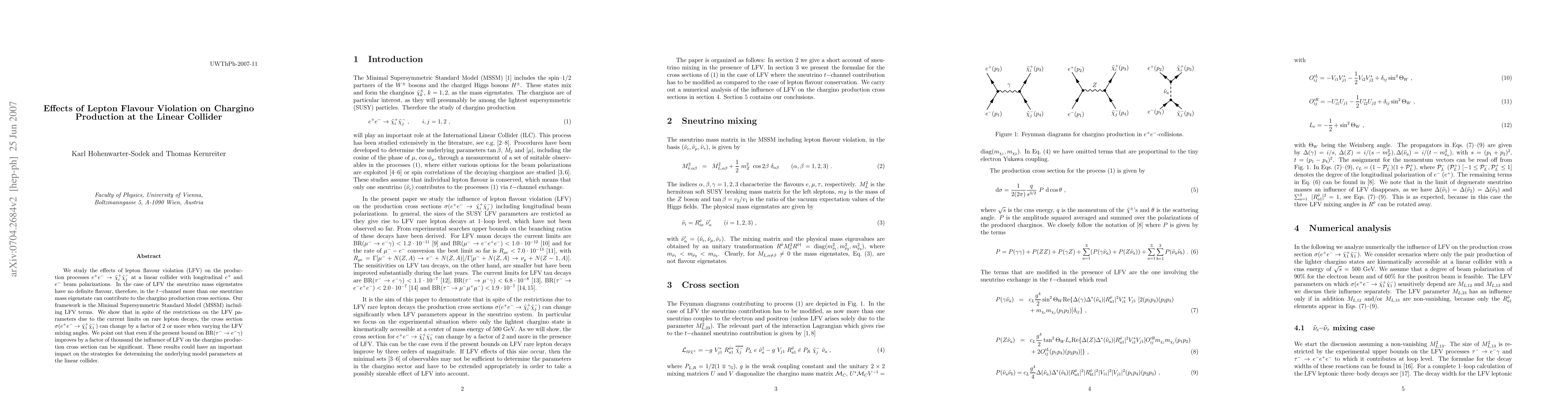 This study investigates how lepton flavour violation (LFV) influences chargino production at a linear collider using polarized beams. Within the Minimal Supersymmetric Standard Model (MSSM) with LFV, the cross section for chargino pair production can vary significantly due to the involvement of multiple sneutrino mass eigenstates in the t-channel, even with current LFV parameter restrictions.