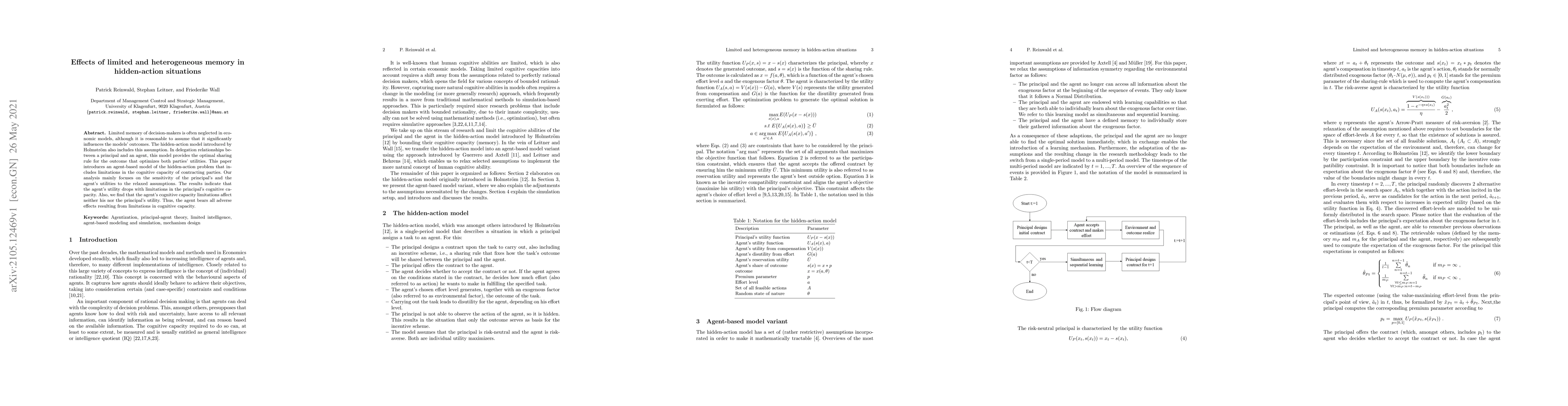 Limited memory of decision-makers is often neglected in economic models, although it is reasonable to assume that it significantly influences the models' outcomes. The hidden-action model introduced by Holmstr\"om also includes this assumption. In delegation relationships between a principal and an agent, this model provides the optimal sharing rule for the outcome that optimizes both parties' utilities. This paper introduces an agent-based model of the hidden-action problem that includes limitations in the cognitive capacity of contracting parties. Our analysis mainly focuses on the sensitivity of the principal's and the agent's utilities to the relaxed assumptions. The results indicate that the agent's utility drops with limitations in the principal's cognitive capacity. Also, we find that the agent's cognitive capacity limitations affect neither his nor the principal's utility. Thus, the agent bears all adverse effects resulting from limitations in cognitive capacity.