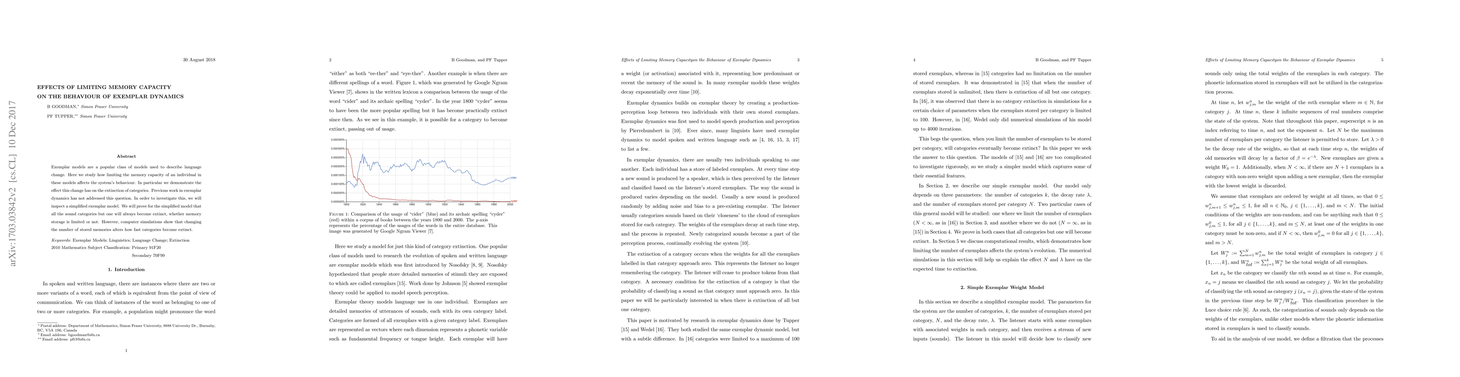 Researchers studied how limiting memory capacity in language change models affects category extinction rates, finding that most categories will become extinct regardless of memory storage limits but at varying speeds.