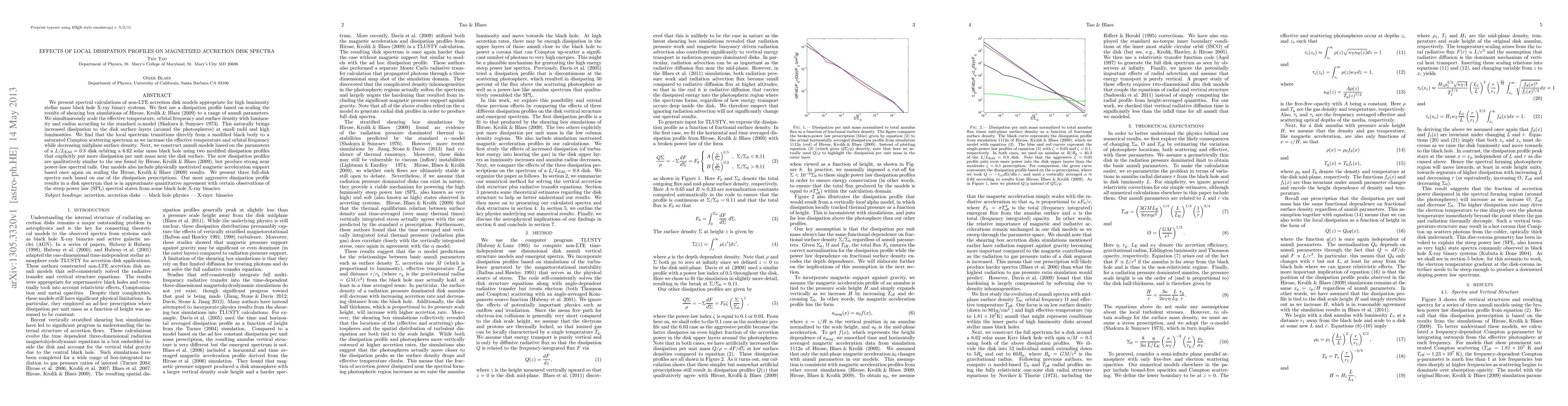 We present spectral calculations of non-LTE accretion disk models appropriate for high luminosity stellar mass black hole X-ray binary systems. We first use a dissipation profile based on scaling the results of shearing box simulations of Hirose et al. (2009) to a range of annuli parameters. We simultaneously scale the effective temperature, orbital frequency and surface density with luminosity and radius according to the standard \alpha-model (Shakura & Sunyaev, 1973). This naturally brings increased dissipation to the disk surface layers (around the photospheres) at small radii and high luminosities. We find that the local spectrum transitions directly from a modified black body to a saturated Compton scattering spectrum as we increase the effective temperature and orbital frequency while decreasing midplane surface density. Next, we construct annuli models based on the parameters of a L/L_Edd=0.8 disk orbiting a 6.62 solar mass black hole using two modified dissipation profiles that explicitly put more dissipation per unit mass near the disk surface. The new dissipation profiles are qualitatively similar to the one found by Hirose et al. (2009), but produce strong near power-law spectral tails. Our models also include physically motivated magnetic acceleration support based once again on scaling the Hirose et al. (2009) results. We present three full-disk spectra each based on one of the dissipation prescriptions. Our most aggressive dissipation profile results in a disk spectrum that is in approximate quantitative agreement with certain observations of the steep power law (SPL) spectral states from some black hole X-ray binaries.