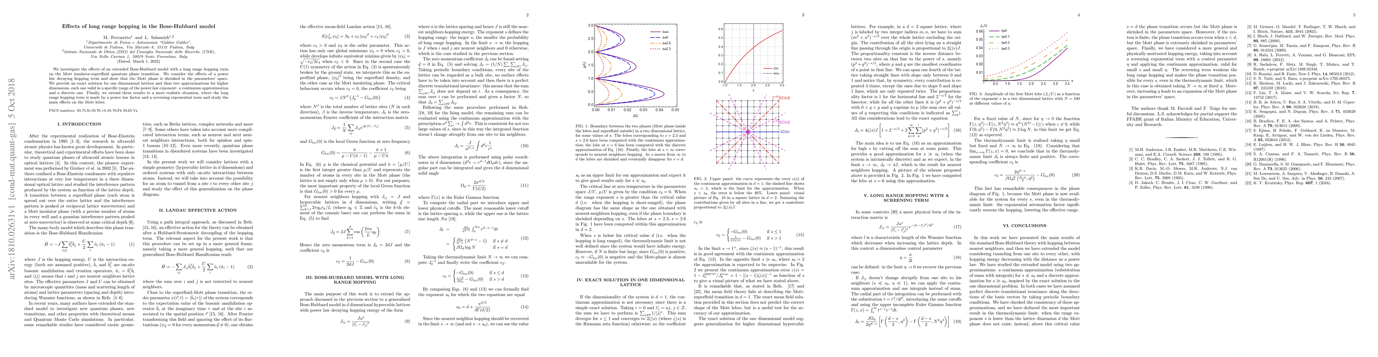 This paper examines the impact of long-range hopping in the Bose-Hubbard model on the Mott insulator-superfluid transition, showing that the Mott phase shrinks. It provides an exact solution for 1D lattices and approximations for higher dimensions, concluding that the long-range hopping term significantly alters the Mott lobes.