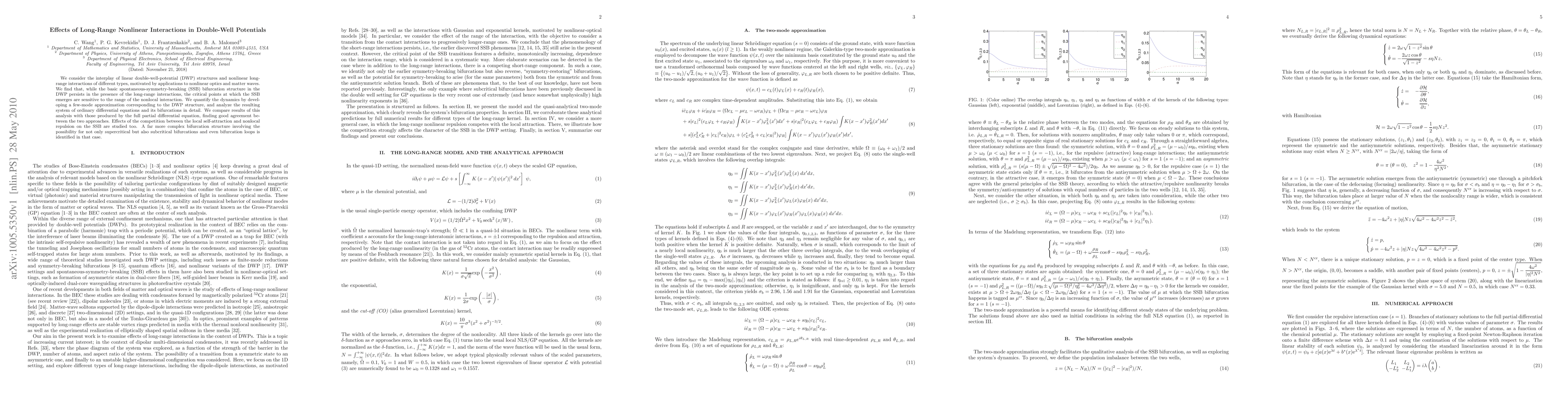 We consider the interplay of linear double-well-potential (DWP) structures and nonlinear longrange interactions of different types, motivated by applications to nonlinear optics and matter waves. We find that, while the basic spontaneous-symmetry-breaking (SSB) bifurcation structure in the DWP persists in the presence of the long-range interactions, the critical points at which the SSB emerges are sensitive to the range of the nonlocal interaction. We quantify the dynamics by developing a few-mode approximation corresponding to the DWP structure, and analyze the resulting system of ordinary differential equations and its bifurcations in detail. We compare results of this analysis with those produced by the full partial differential equation, finding good agreement between the two approaches. Effects of the competition between the local self-attraction and nonlocal repulsion on the SSB are studied too. A far more complex bifurcation structure involving the possibility for not only supercritical but also subcritical bifurcations and even bifurcation loops is identified in that case.
