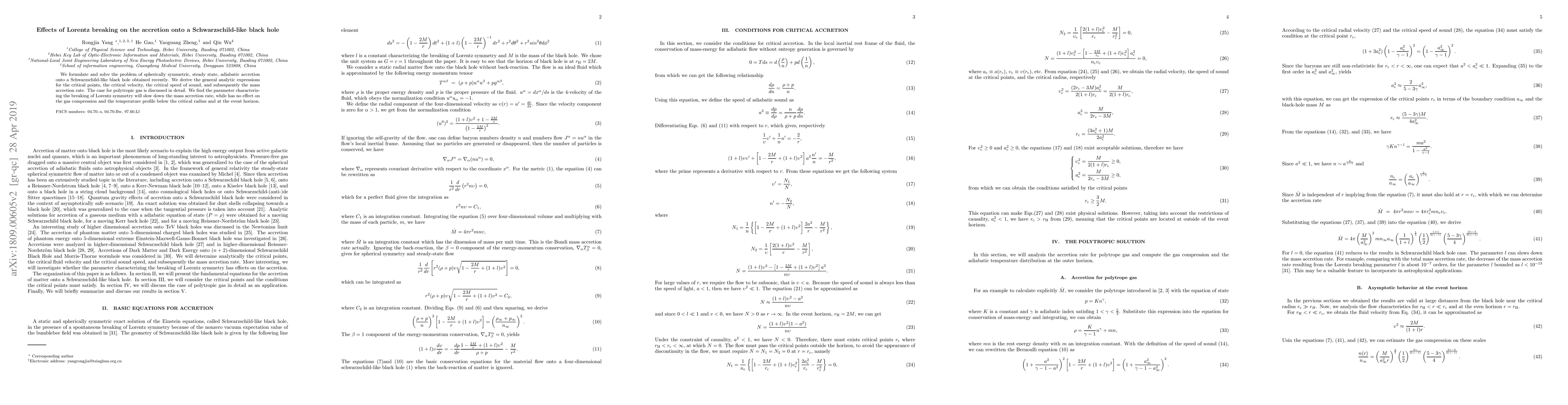 This paper investigates the impact of Lorentz symmetry breaking on the accretion process onto a Schwarzschild-like black hole, deriving analytic expressions for critical points and mass accretion rate. It finds that Lorentz symmetry breaking reduces the accretion rate but does not affect gas compression or temperature profiles below the critical radius and at the event horizon.