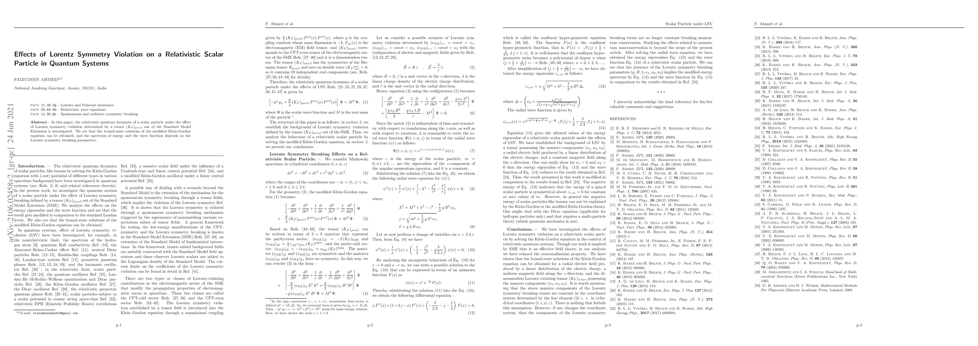 In this paper, the relativistic quantum dynamics of a scalar particle under the effect of Lorentz symmetry violation determined by a tensor $(K_{F})_{\mu\,\nu\,\alpha\,\beta}$ out of the Standard Model Extension is investigated. We see that the bound-state solution of the modified Klein-Gordon equation can be obtained, and the spectrum of energy and the wave function depends on the Lorentz symmetry breaking parameters