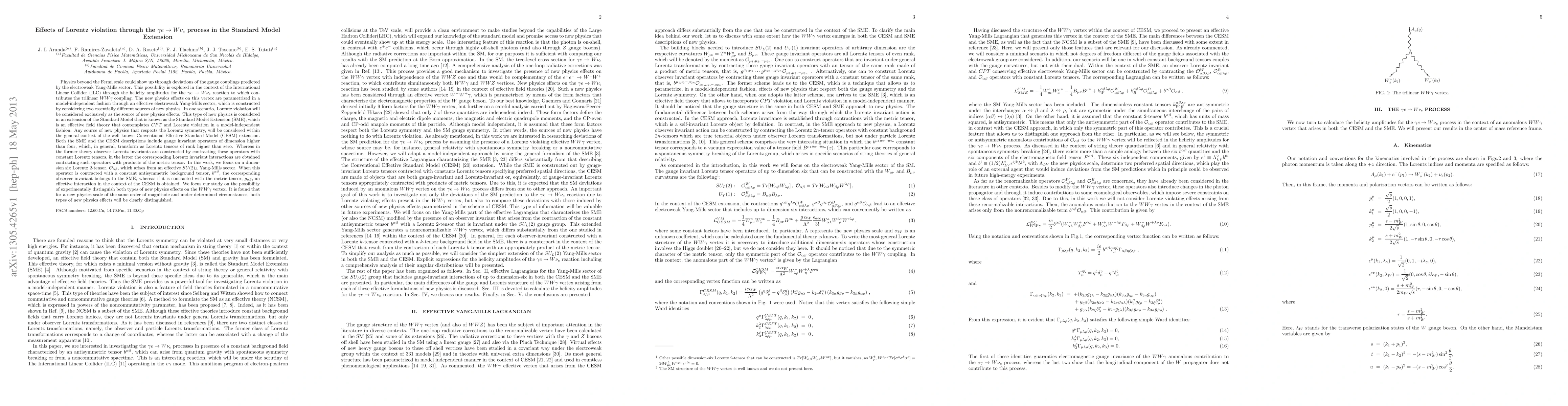 Physics beyond the Fermi scale could show up through deviations of the gauge couplings predicted by the electroweak Yang-Mills sector. This possibility is explored in the context of the International Linear Collider (ILC) through the helicity amplitudes for the gamma e -> W nu_e reaction to which contributes the trilinear WWgamma coupling. The new physics effects on this vertex are parametrized in a model-independent fashion through an effective electroweak Yang-Mills sector, which is constructed by considering two essentially different sources of new physics. In one scenario, Lorentz violation will be considered exclusively as the source of new physics effects. This type of new physics is considered in an extension of the Standard Model that is known as the Standard Model Extension (SME), which is an effective field theory that contemplates CPT and Lorentz violation in a model-independent fashion. Any source of new physics that respects the Lorentz symmetry, will be considered within the general context of the well known Conventional Effective Standard Model (CESM) extension. Both the SME and the CESM descriptions include gauge invariant operators of dimension higher than four, which, in general, transform as Lorentz tensors of rank higher than zero. Whereas in the former theory observer Lorentz invariants are constructed by contracting these operators with constant Lorentz tensors, in the latter the corresponding Lorentz invariant interactions are obtained contracting such operators with products of the metric tensor. We focus our study on the possibility of experimentally distinguish both types of new physics effects on the WWgamma vertex. It is found that for a new physics scale of the same order of magnitude and under determined circumstances, both types of new physics effects will be clearly distinguished.