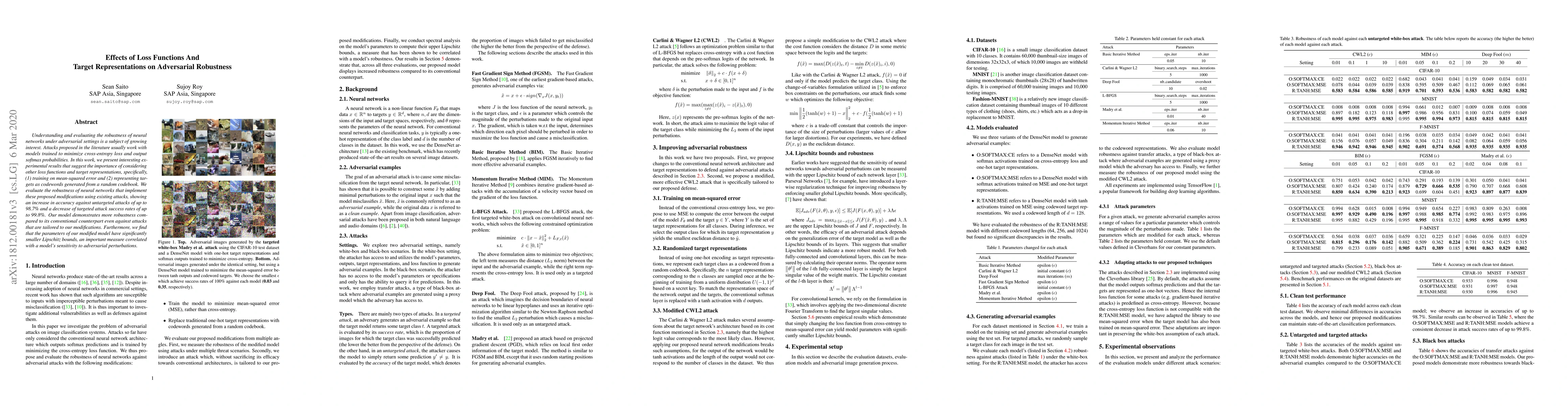Understanding and evaluating the robustness of neural networks under adversarial settings is a subject of growing interest. Attacks proposed in the literature usually work with models trained to minimize cross-entropy loss and output softmax probabilities. In this work, we present interesting experimental results that suggest the importance of considering other loss functions and target representations, specifically, (1) training on mean-squared error and (2) representing targets as codewords generated from a random codebook. We evaluate the robustness of neural networks that implement these proposed modifications using existing attacks, showing an increase in accuracy against untargeted attacks of up to 98.7\% and a decrease of targeted attack success rates of up to 99.8\%. Our model demonstrates more robustness compared to its conventional counterpart even against attacks that are tailored to our modifications. Furthermore, we find that the parameters of our modified model have significantly smaller Lipschitz bounds, an important measure correlated with a model's sensitivity to adversarial perturbations.