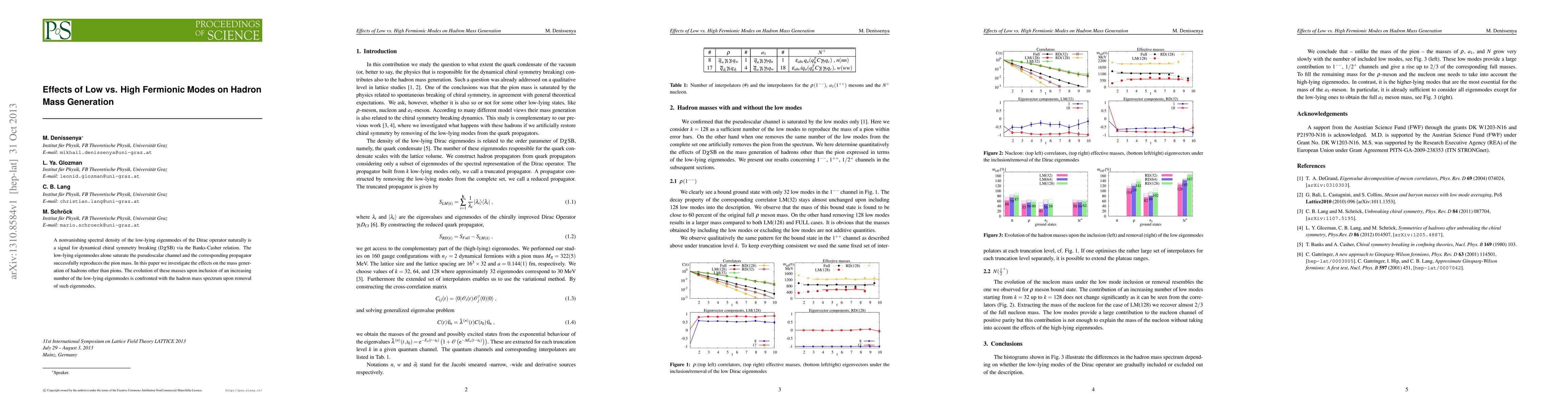 This study investigates how adding more fermionic modes affects hadron mass generation in physics. It finds that including low-lying eigenmodes can accurately reproduce the masses of various hadrons, providing insights into dynamical chiral symmetry breaking.
