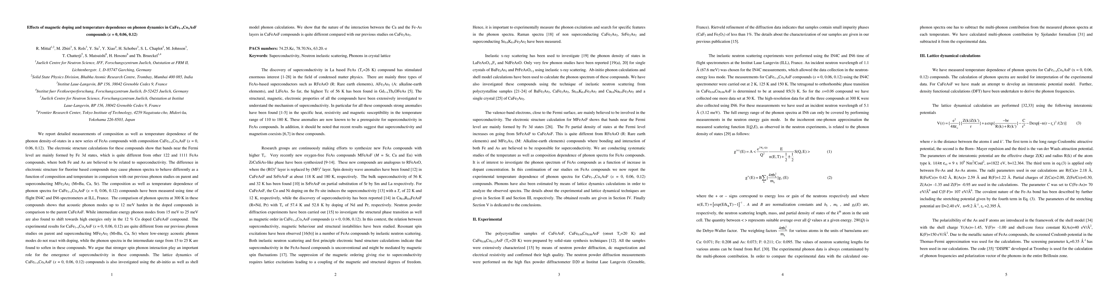 Researchers studied the effects of magnetic doping on phonon dynamics in CaFe extsubscript{1-x}Co extsubscript{x}AsF compounds, finding hardened acoustic phonon modes with increased Co doping, which may contribute to superconductivity.
