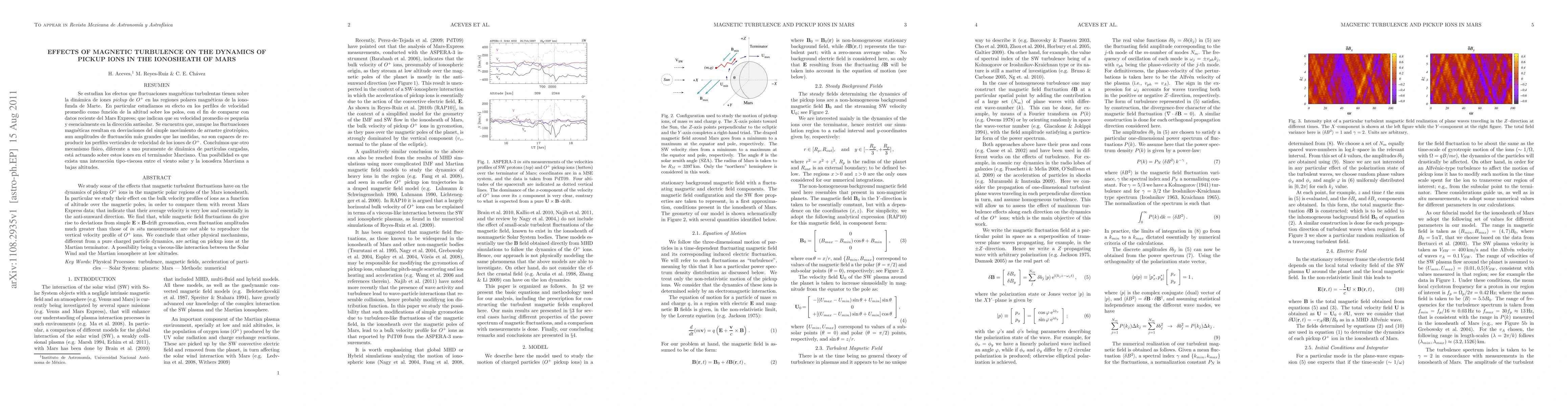 We study some of the effects that magnetic turbulent fluctuations have on the dynamics of pickup O+ ions in the magnetic polar regions of the Mars ionosheath. In particular we study their effect on the bulk velocity profiles of ions as a function of altitude over the magnetic poles, in order to compare them with recent Mars Express data; that indicate that their average velocity is very low and essentially in the anti-sunward direction. We find that, while magnetic field fluctuations do give rise to deviations from simple ExB-drift gyromotion, even fluctuation amplitudes much greater than those of in situ measurements are {\it not} able to reproduce the vertical velocity profile of O+ ions. We conclude that other physical mechanisms, different from a pure charged particle dynamics, are acting on pickup ions at the Martian terminator. A possibility being a viscous-like interaction between the Solar Wind and the Martian ionosphere at low altitudes.