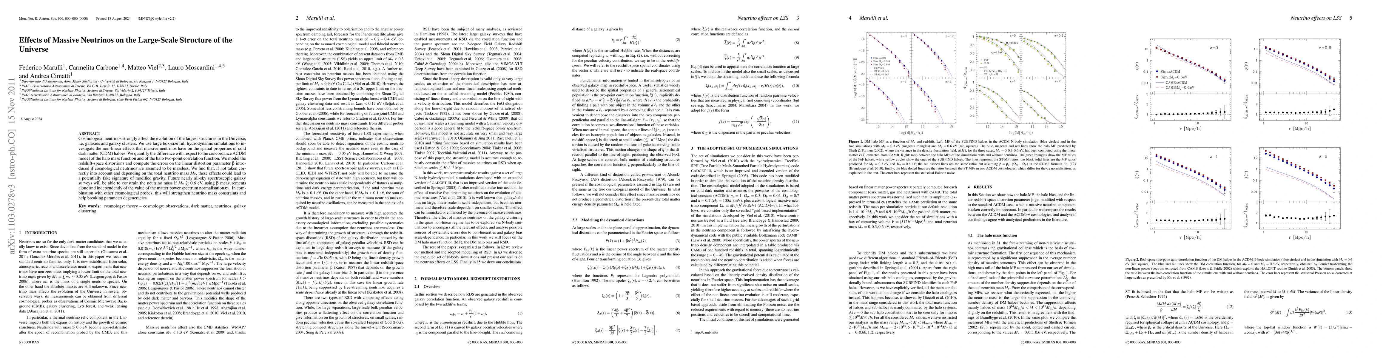 Cosmological neutrinos significantly impact galaxy formation, potentially mimicking modified gravity; future surveys can constrain their mass with high precision.