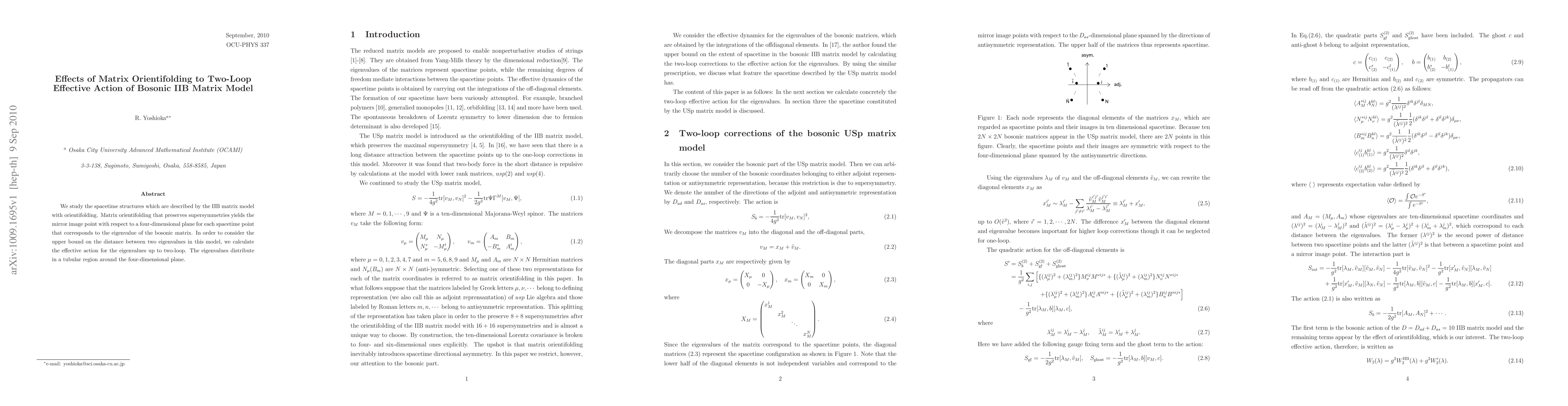 This paper investigates the IIB matrix model with orientifolding, focusing on the supersymmetric mirror image effect it produces. The authors calculate the two-loop effective action to determine the upper bound on the distance between eigenvalues, revealing the eigenvalues' distribution in a tubular region around a four-dimensional plane.
