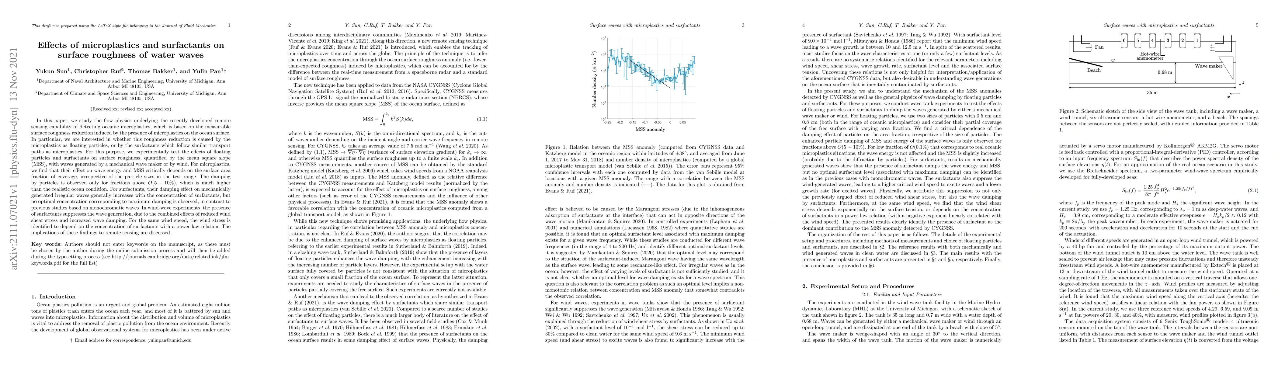 The study quantifies the effects of microplastics and surfactants on surface roughness and wave energy, providing a detailed understanding of their roles in ocean wave dynamics.