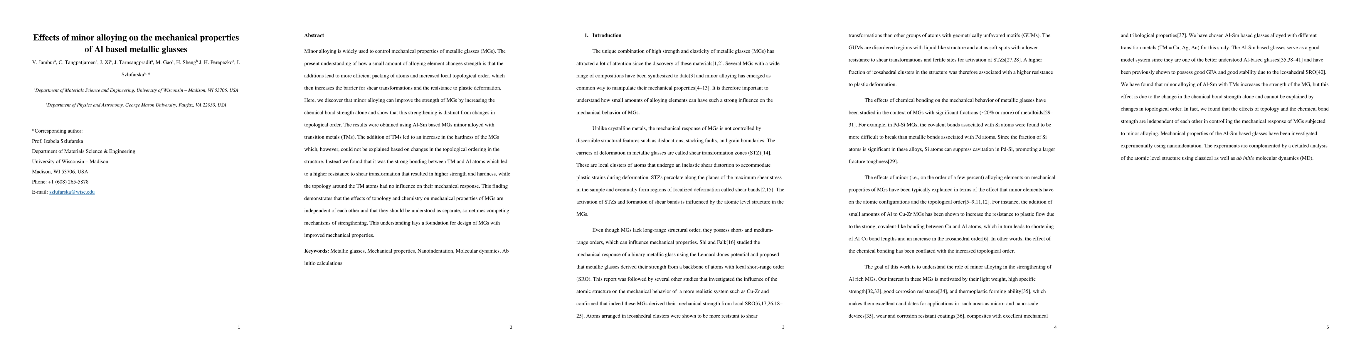 This study reveals that minor alloying with transition metals in Al-Sm based metallic glasses enhances strength by increasing the chemical bond strength between TM and Al atoms, rather than by altering topological order. This finding indicates that chemistry and topology independently influence the mechanical properties of metallic glasses, providing a new perspective for designing stronger MGs.