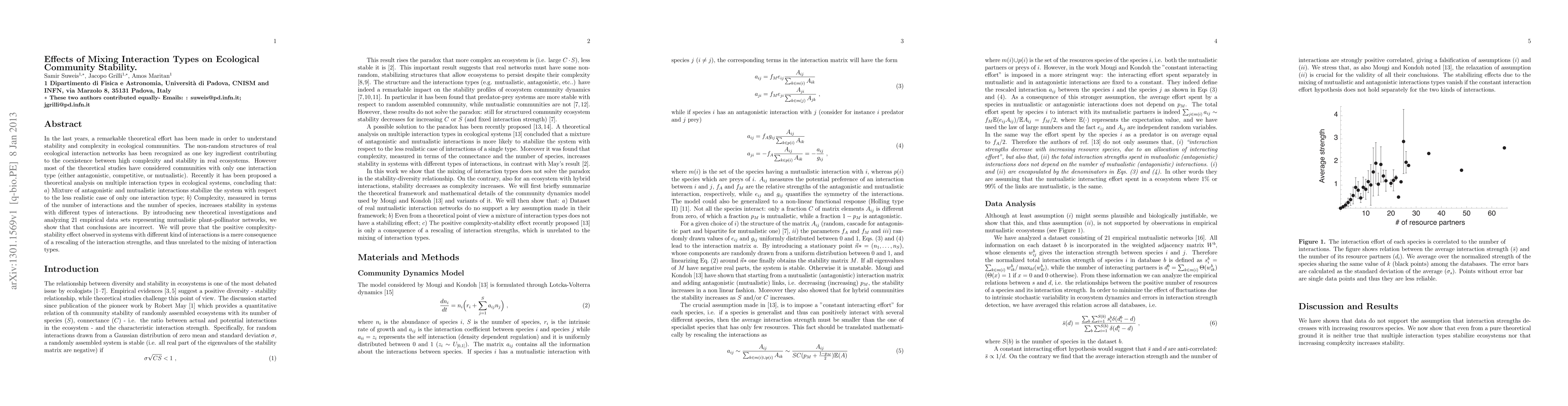 In the last years, a remarkable theoretical effort has been made in order to understand stability and complexity in ecological communities. The non-random structures of real ecological interaction networks has been recognized as one key ingredient contributing to the coexistence between high complexity and stability in real ecosystems. However most of the theoretical studies have considered communities with only one interaction type (either antagonistic, competitive, or mutualistic). Recently it has been proposed a theoretical analysis on multiple interaction types in ecological systems, concluding that: a) Mixture of antagonistic and mutualistic interactions stabilize the system with respect to the less realistic case of only one interaction type; b) Complexity, measured in terms of the number of interactions and the number of species, increases stability in systems with different types of interactions. By introducing new theoretical investigations and analyzing 21 empirical data sets representing mutualistic plant-pollinator networks, we show that that conclusions are incorrect. We will prove that the positive complexity-stability effect observed in systems with different kind of interactions is a mere consequence of a rescaling of the interaction strengths, and thus unrelated to the mixing of interaction types.