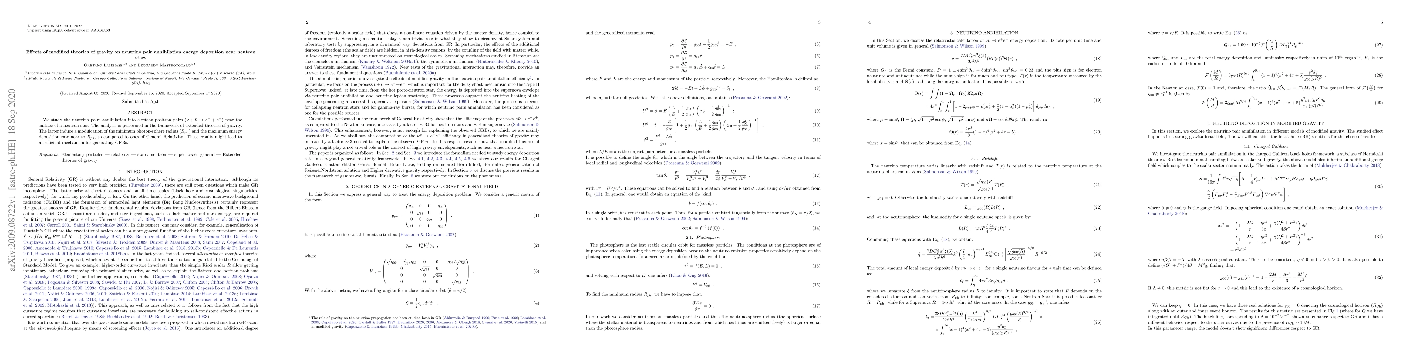 This paper investigates how modified theories of gravity affect neutrino pair annihilation near neutron stars, finding that these theories can alter the energy deposition rate, potentially offering a mechanism for generating gamma-ray bursts (GRBs).