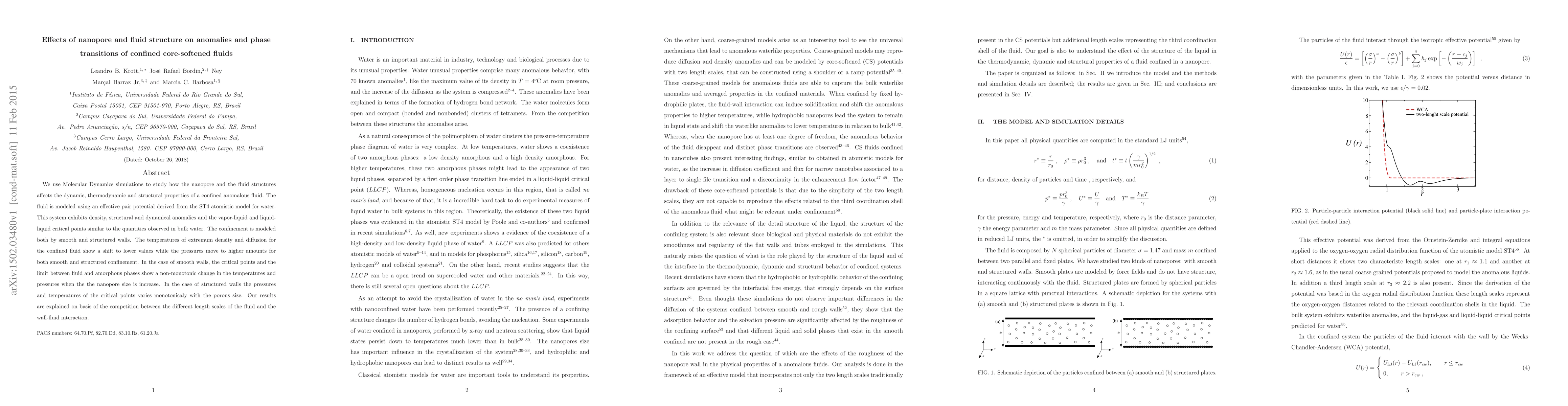 We use Molecular Dynamics simulations to study how the nanopore and the fluid structures affects the dynamic, thermodynamic and structural properties of a confined anomalous fluid. The fluid is modeled using an effective pair potential derived from the ST4 atomistic model for water. This system exhibits density, structural and dynamical anomalies and the vapor-liquid and liquid-liquid critical points similar to the quantities observed in bulk water. The confinement is modeled both by smooth and structured walls. The temperatures of extremum density and diffusion for the confined fluid show a shift to lower values while the pressures move to higher amounts for both smooth and structured confinement. In the case of smooth walls, the critical points and the limit between fluid and amorphous phases show a non-monotonic change in the temperatures and pressures when the the nanopore size is increase. In the case of structured walls the pressures and temperatures of the critical points varies monotonicaly with the porous size. Our results are explained on basis of the competition between the different length scales of the fluid and the wall-fluid interaction.