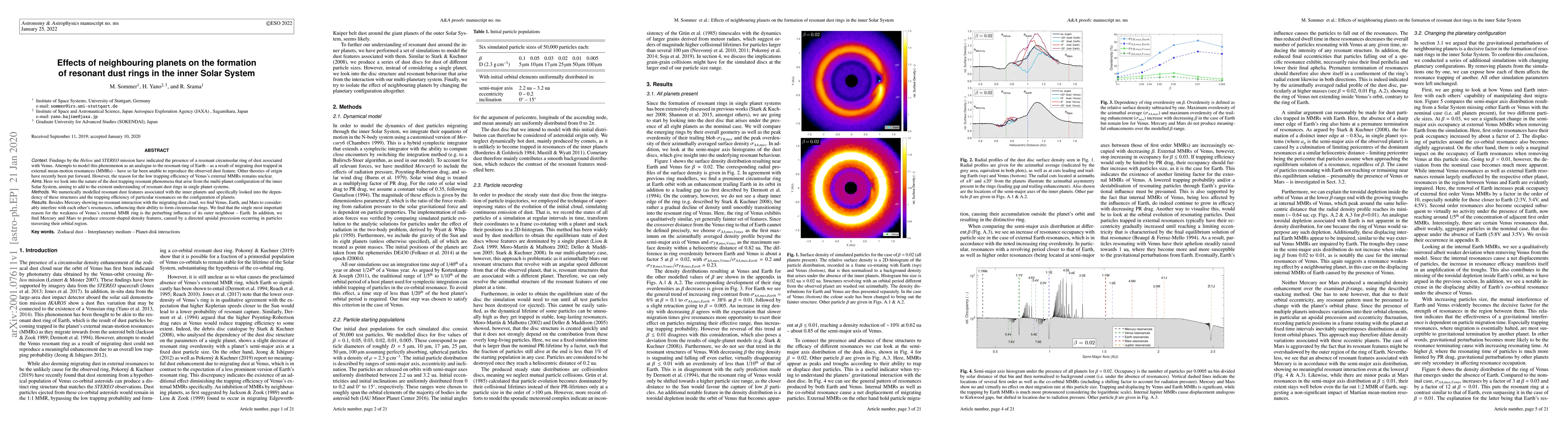 Context. Findings by the Helios and STEREO mission have indicated the presence of a resonant circumsolar ring of dust associated with Venus. Attempts to model this phenomenon as an analogue to the resonant ring of Earth - as a result of migrating dust trapped in external mean-motion resonances (MMRs) - have so far been unable to reproduce the observed dust feature. Other theories of origin have recently been put forward. However, the reason for the low trapping efficiency of Venus's external MMRs remains unclear. Aims. Here we look into the nature of the dust trapping resonant phenomena that arise from the multi-planet configuration of the inner Solar System, aiming to add to the existent understanding of resonant dust rings in single planet systems. Methods. We numerically modelled resonant dust features associated with the inner planets and specifically looked into the dependency of these structures and the trapping efficiency of particular resonances on the configuration of planets. Results. Besides Mercury showing no resonant interaction with the migrating dust cloud, we find Venus, Earth, and Mars to considerably interfere with each other's resonances, influencing their ability to form circumsolar rings. We find that the single most important reason for the weakness of Venus's external MMR ring is the perturbing influence of its outer neighbour - Earth. In addition, we find Mercury and Mars to produce crescent-shaped density features, caused by a directed apsidal precession occurring in particles traversing their orbital region.