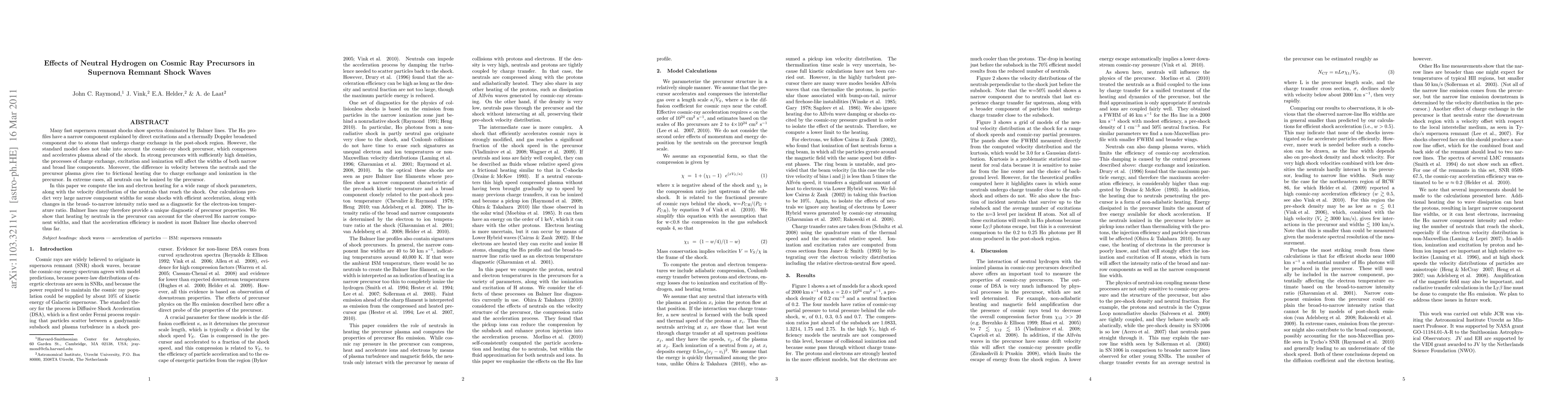 This paper investigates how neutral hydrogen influences cosmic ray precursors in supernova remnant shock waves, finding that neutrals can significantly affect the widths of Balmer line components and the broad-to-narrow intensity ratio. The study concludes that Balmer lines can serve as a diagnostic tool for precursor properties and that heating by neutrals in the precursor can explain observed H$\alpha$ narrow component widths.