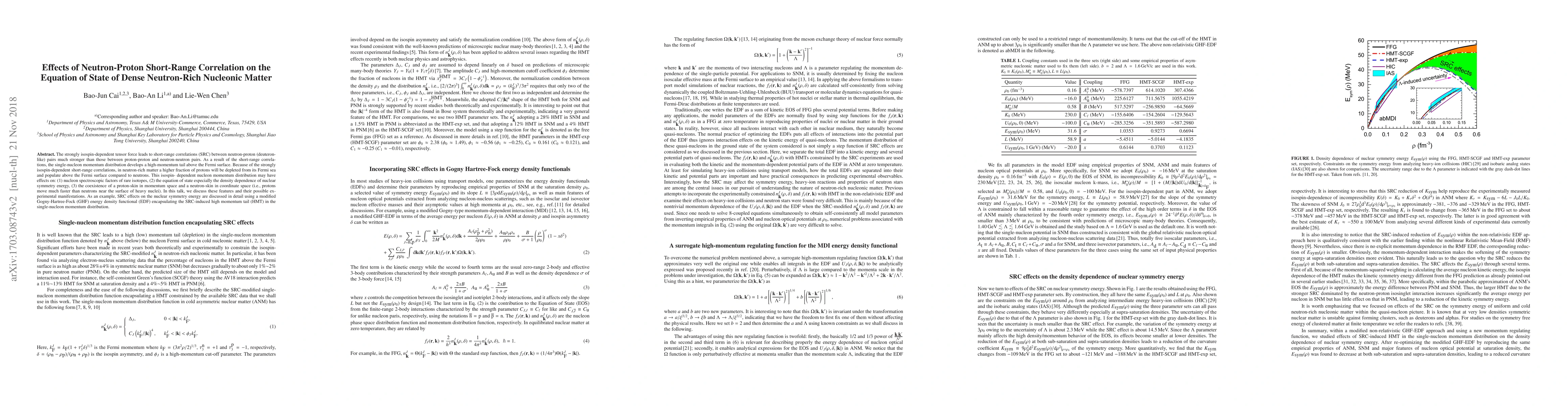 This paper explores how neutron-proton short-range correlations impact the equation of state for dense neutron-rich matter, emphasizing the influence of isospin-dependent tensor forces on nucleon momentum distributions and the implications for nuclear symmetry energy. The study highlights the potential experimental effects, including modifications in rare isotope spectroscopy and the coexistence of proton and neutron skins.