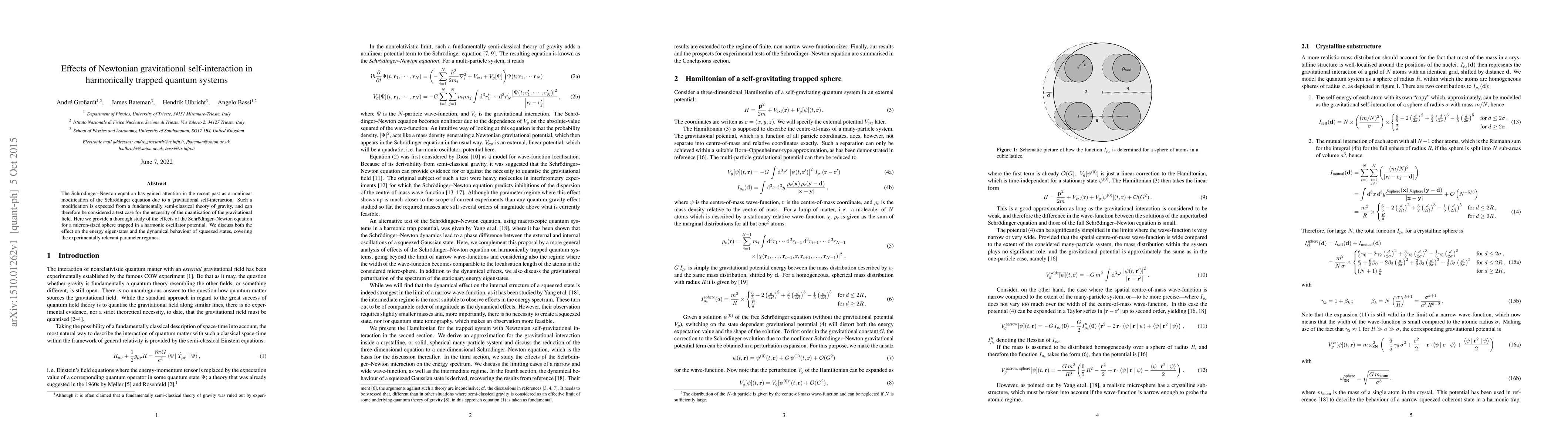 Researchers studied how adding gravity's self-interaction to a quantum system affects its behavior, finding it changes energy eigenstates and dynamical behavior of squeezed states in small spheres trapped in harmonic oscillators.