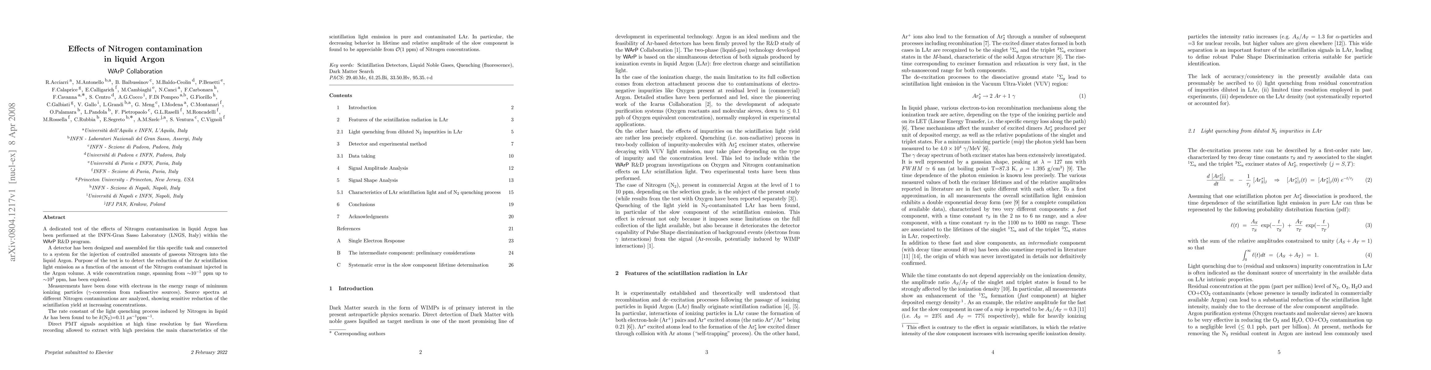 This study investigates the impact of Nitrogen contamination on liquid Argon's scintillation light emission, finding a significant reduction in scintillation yield with increasing Nitrogen concentrations. The rate constant for the light quenching process was determined to be k(N2)=0.11 micros^-1 ppm^-1, with noticeable effects on the scintillation lifetime and amplitude starting at O(1 ppm) Nitrogen levels.