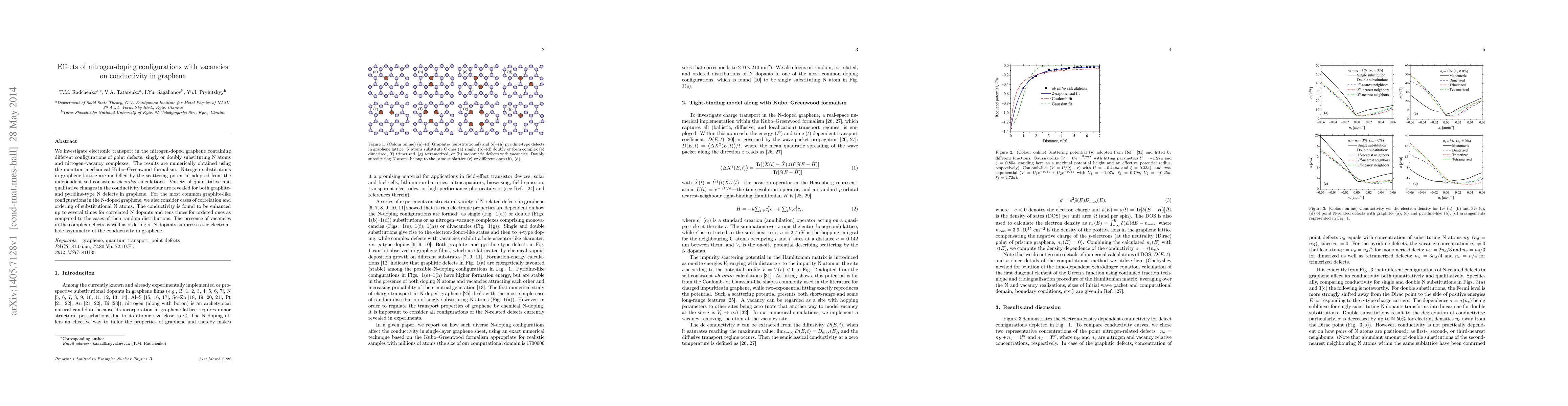 This study examines electronic transport in nitrogen-doped graphene with various nitrogen configurations and point defects, revealing significant enhancements in conductivity for correlated and ordered nitrogen dopants, while also noting suppression of electron-hole asymmetry when vacancies are present.
